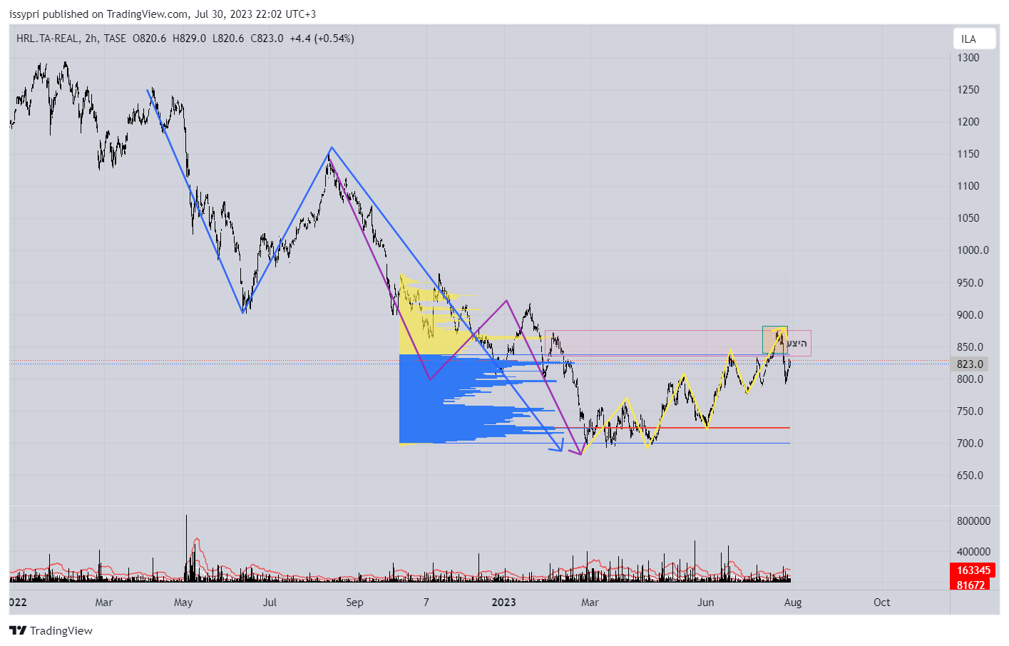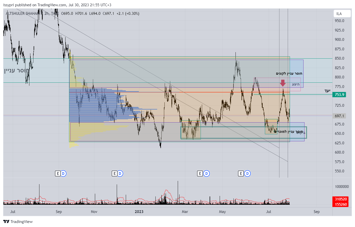 הצפי הקודם היה ליעד 760 (תעשו חיפוש). אפשר לראות מה קרה שהמחיר הגיע לשם. הסיבה - המחיר נע בטווח מוגדר (כרגע) כאשר לפי פרופיל הווליום, אזור 760-840 הוא אזור עם עניין מועט לקונים. כעת המחיר מתקרב לאזור עניין עם חוסר עניין (עד כה) למוכרים.