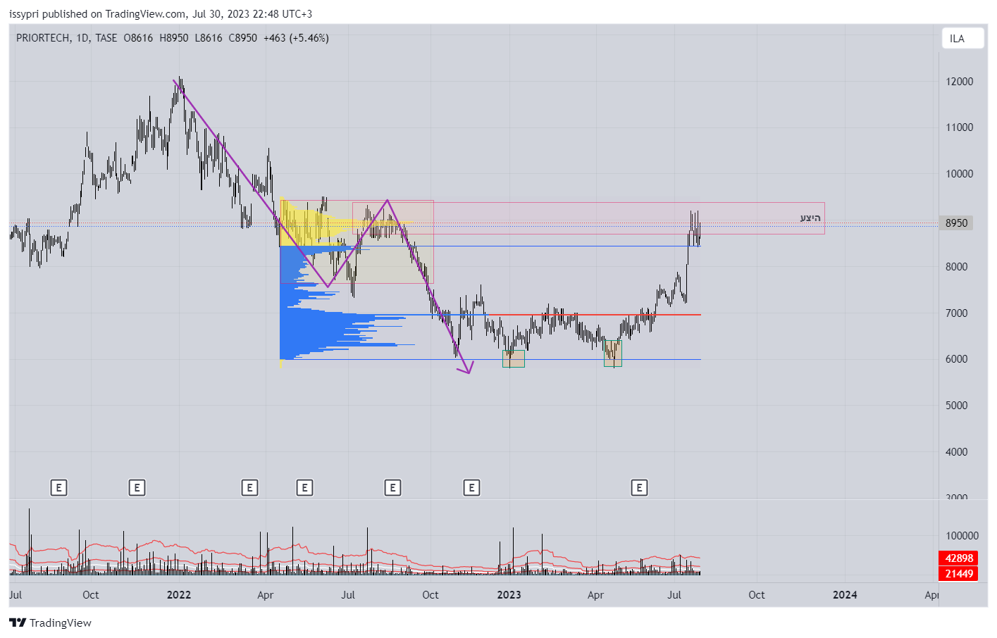 נמצאת במה שנקרא - אזור פרמיום אזור יקר ליד גבוה יורד אחרון במגמה יורדת. המחיר בהיצע ורואים את הבלימה. המחזורים לא גבוהים וזה אומר - אין הרבה קונים אגרסיביים והמוכרים הפאסיביים מעכלים את מה שבא לשם. אני אישית לא סוחר לונג בפרימיום.