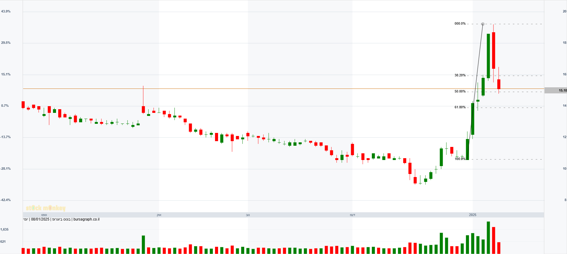 הוא מהיותר סקסיים שהיו בבורסה. בתחילת השנה קניתי הרבה מהמניה באזורי 9 שח למניה כי היא הייתה נראית לי מאוד זולה וגם כתבתי פה על כך (יש לינק). כמעט שנה שלמה היא הוציאה לי את הנשמה עם הדשדוש שלה - עולה קצת חוזרת למקום וחוזר חלילה. אבל החזקתי מעמד ולא איבדתי סבלנות ופתאום החודש המניה עלתה על טיל רק כיוון אחד. כל יום עולה 3-4 אחוז ולא מביטה אחורה. לקח? אם אתם משוכנעים שהמניה זולה, תחזיקו מעמד זה בסוף בא כמו טיל ובפרק זמן קצר מאוד.