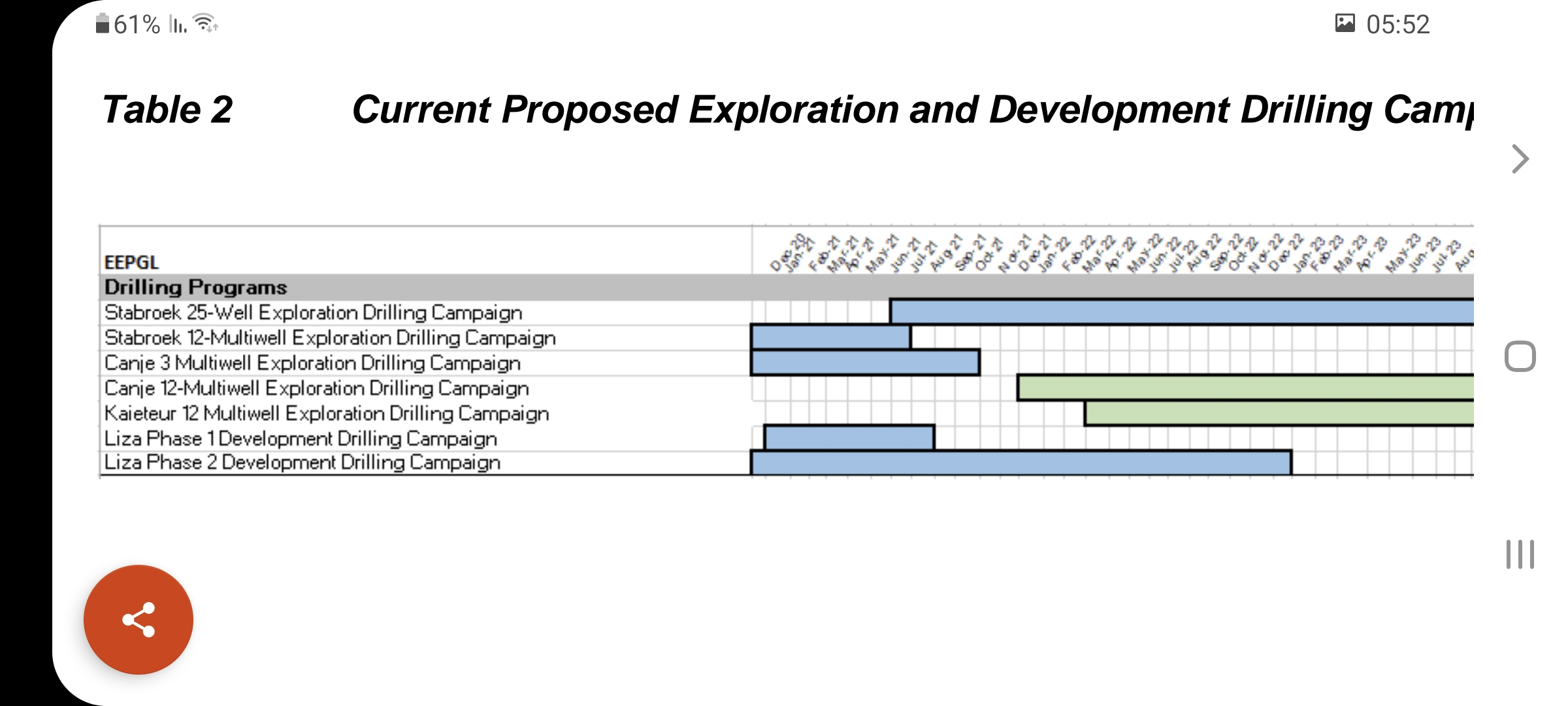 It is anticipated that the Project will begin second quarter 2022. If a discovery is made, a well test may be performed. Conclusion of the proposed drilling project is expected by 1Q2027. Operations and activities in the Kaieteur block will continue to be performed under the terms of each of the Petroleum Agreement, Licence and relevant permits.