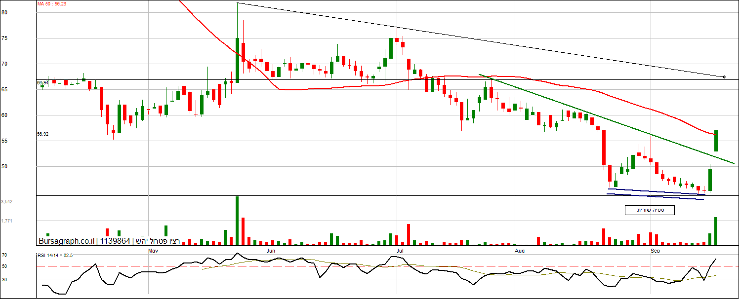 איסוף סחורה בשבוע האחרון סביב שער 13 אג'. מחזיק פוזיציה מהשבוע האחרון, שער ממוצע 12.95 5% מהתיק. אם תפרוץ את 13.8 (שער נוכחי) - זה עלול להיות אלים.