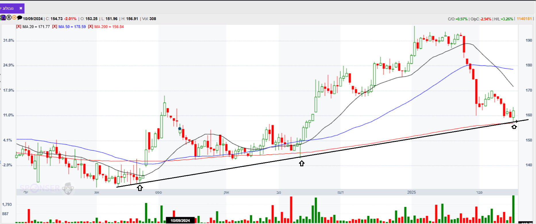 מניה למעקב נובולוג על קו מגמה עולה
