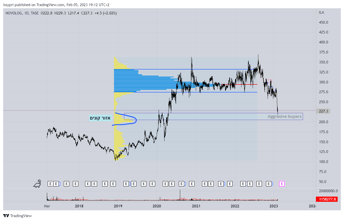 כשהמניה עושה שפל חדש תמכר ואין דבר כזה קווי תמיכה והתנגדות זה שהיו שם קונים באזור זה בעבר לא מחייב שהם יחזרו לפי דעתי עשוי ליפול עד ל150 להשלים תבנית m בגדול יכול להוציא מהלך עולה ולעשות ריסט לקו מגמה ל260 אבל זה לא שווה את המאמץ