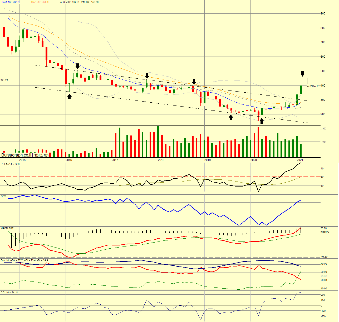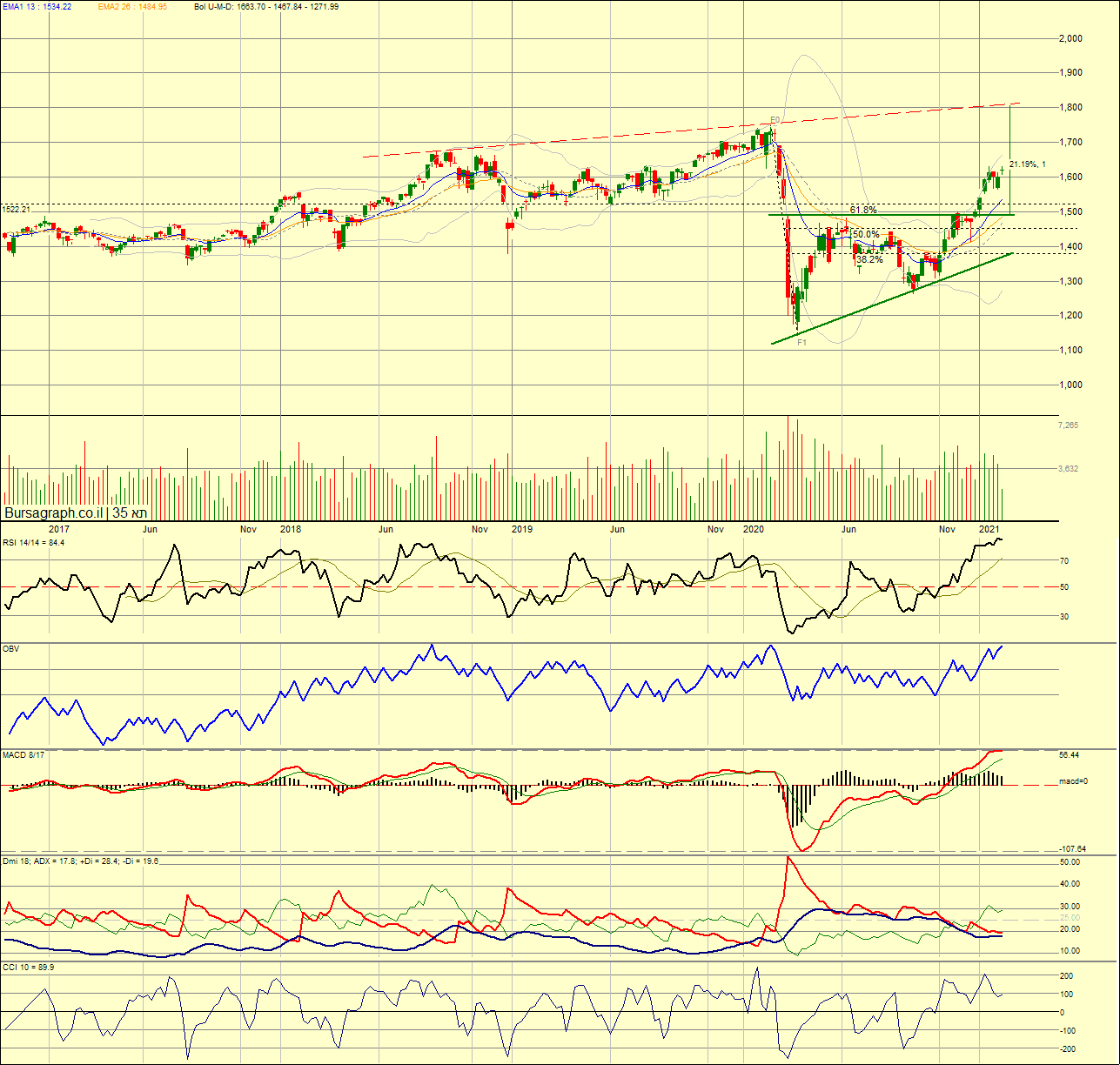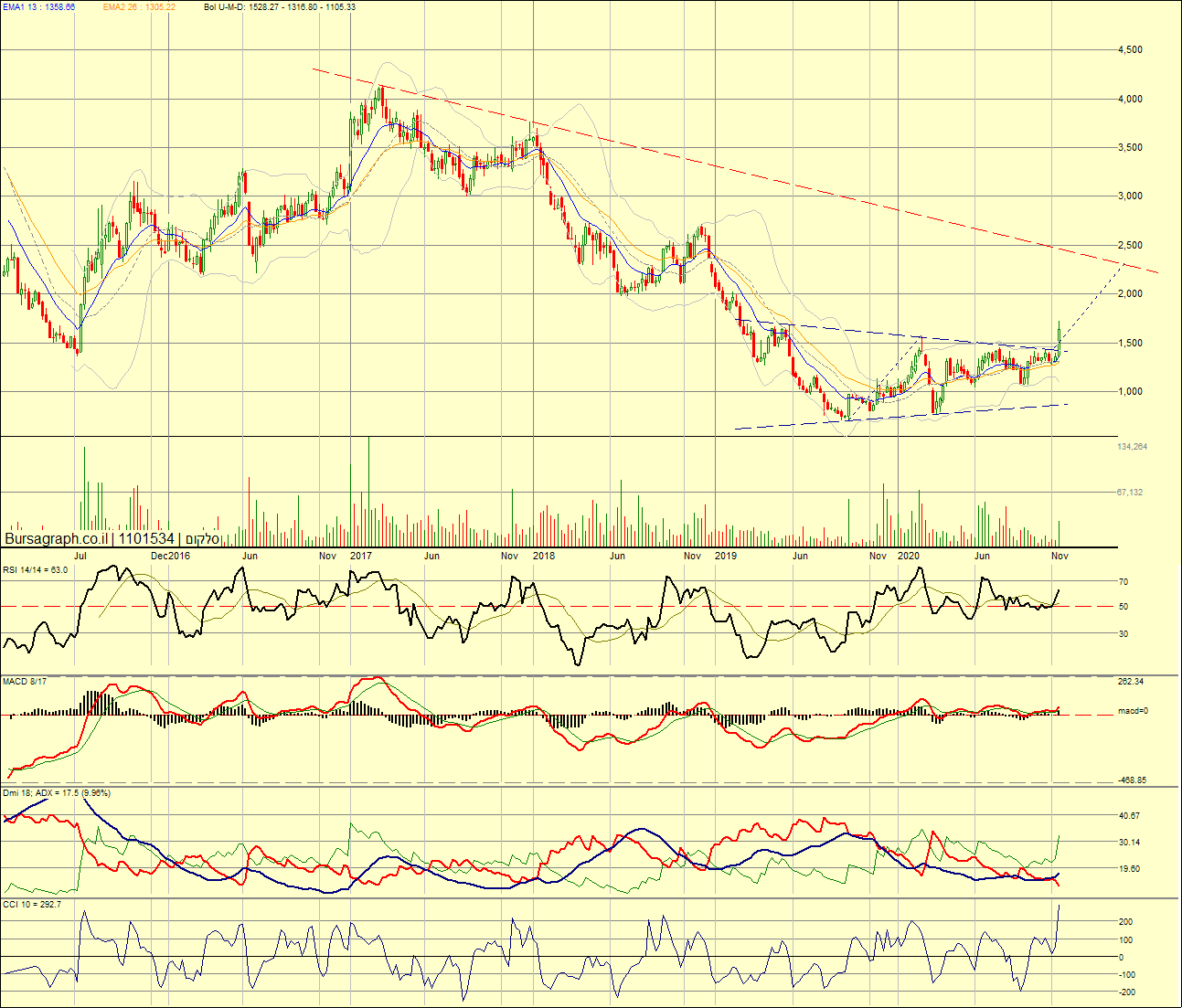 בינתיים זה נראה כמו היפוך. צריך לראות כיצד תסגור. יש לי שם אחזקה ממש קטנה כי את הרוב מימשתי כבר, אבל אם אכן יתחיל שם תיקון עולה, יכולה לתת כמה אחוזים טובים כלפי מעלה וזה יכול להיות טרייד מעניין בתור סיבוב קצר. ללא שום המלצה! 🤞