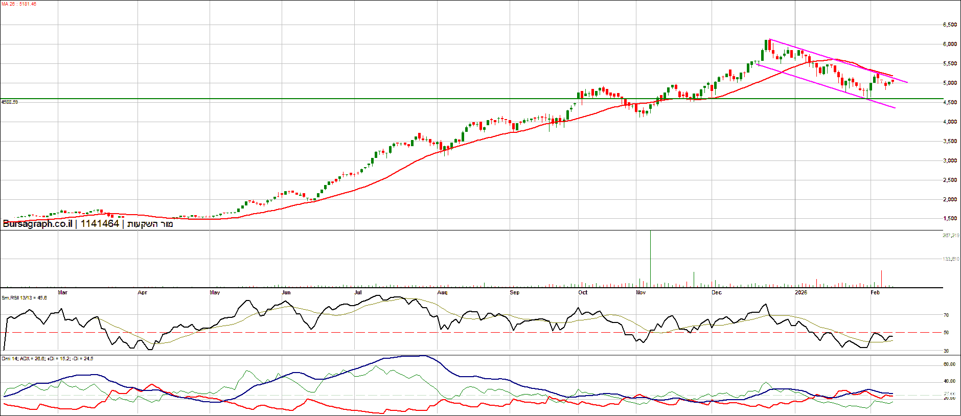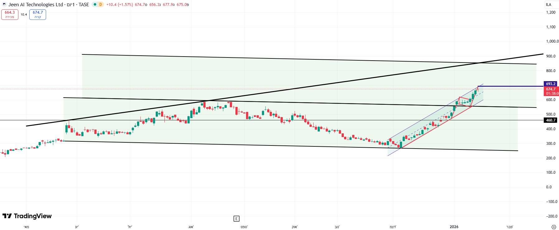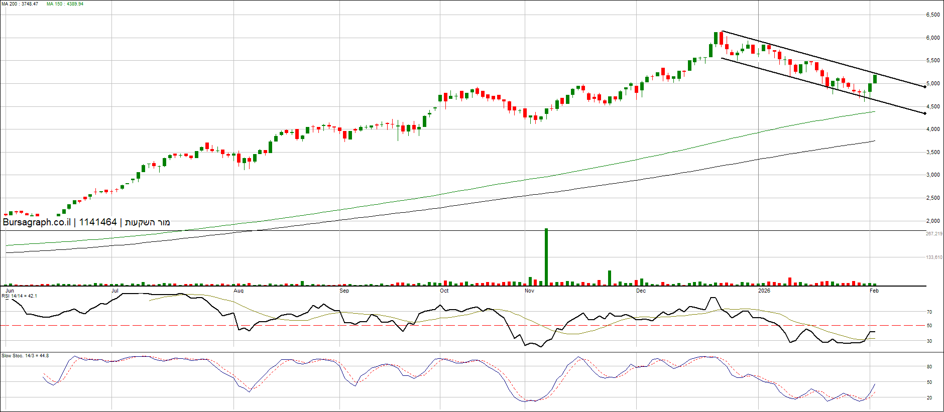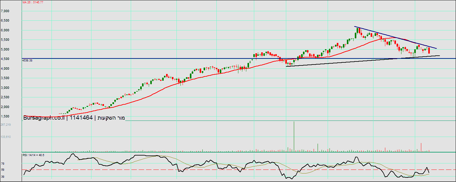 יש שם תבנית ראש וכתפיים, לא הייתי מתקרב כרגע למניה, לא שווה את הסיכון. כניסה בשערים האלו היא בבחינת לנסות לתפוס סכין נופלת ועדיף להמתין להתייצבות על רמת תמיכה ברורה. 3,700 רמת פיבונאצ'י 0.5, 3126 פיבו 0.618. בהצלחה