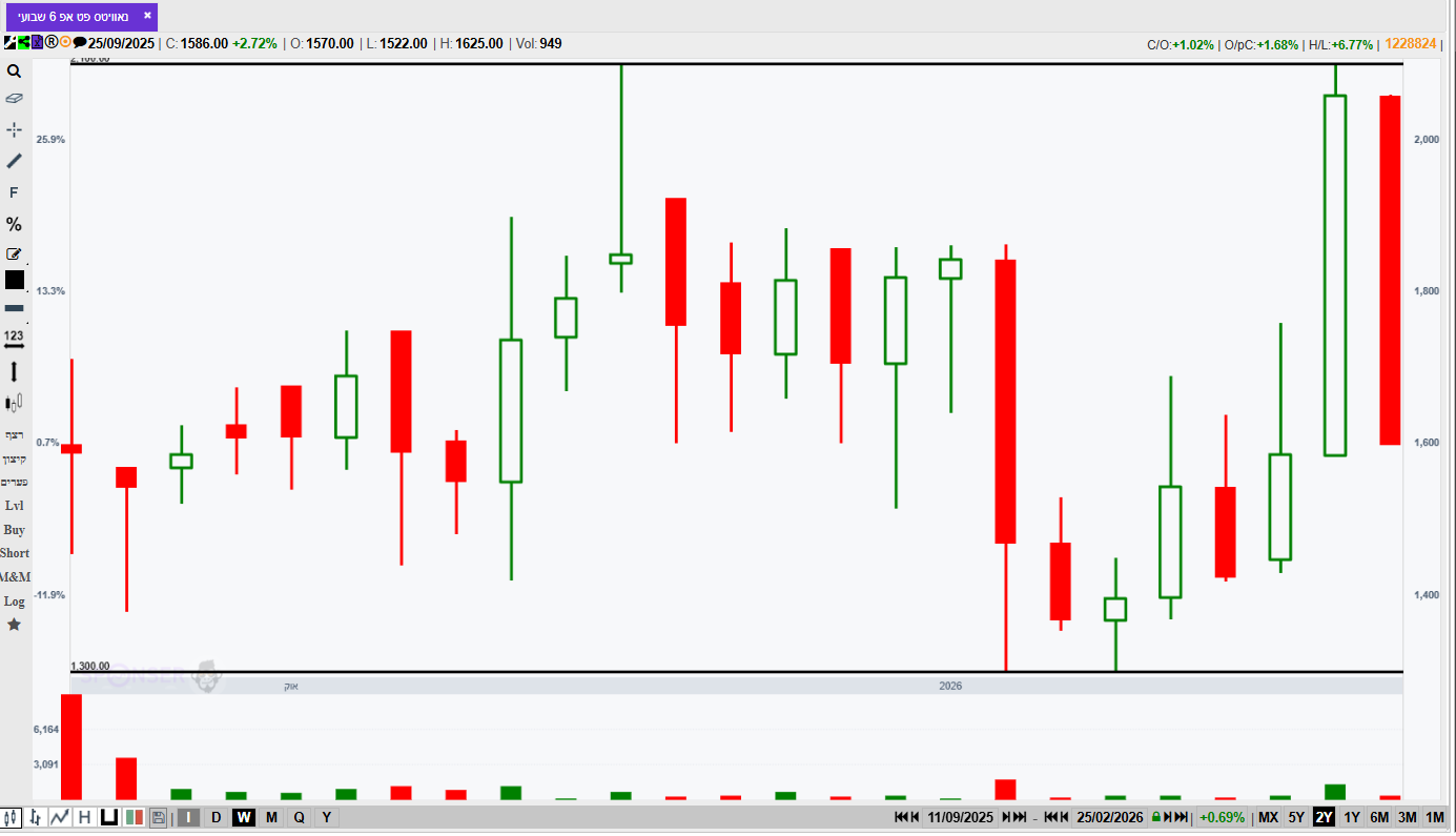 2 מנות שנכנסו ב-10,100 מניה כבדהה, לוקח לה זמן אבל גם אין תנועות מטלטלות בהצלחה לרונן ושאר המחזיקים.