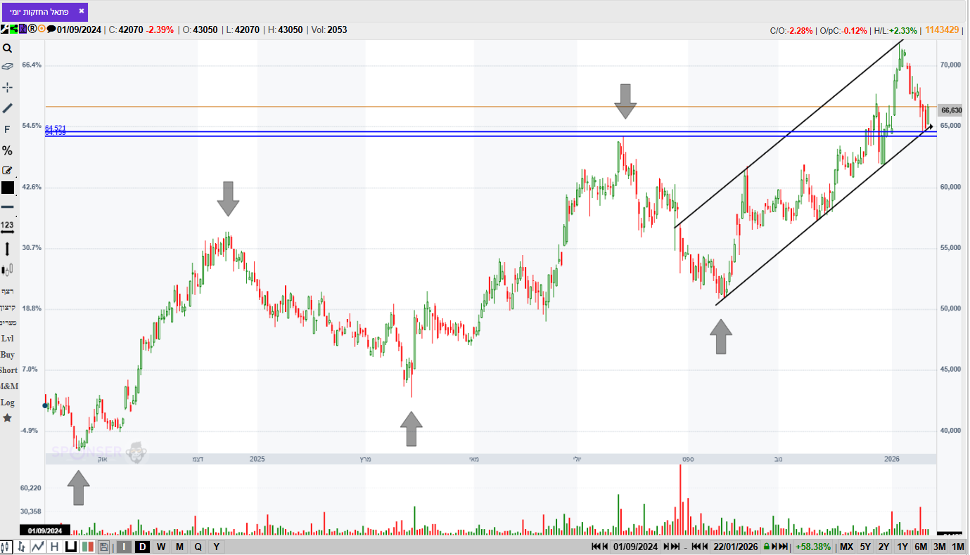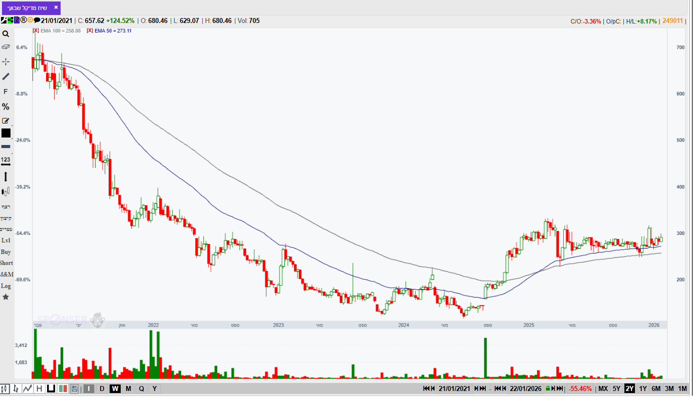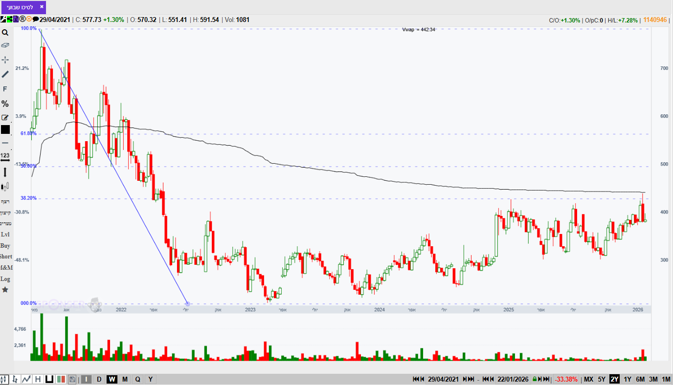 צריך לראות אם שבוע שעבר ינסה לפרוץ אותו ולייצר שפל ושיא עולה במינורי. לחלופין, אם השוק האמריקאי יירד, גם המניה יכולה לייצר שפל יורד.