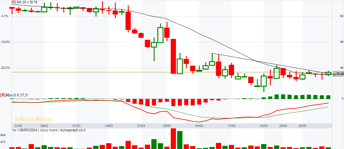 טרייד של כמעט 23% מהכניסה היעד שלי היה מעט גבוה יותר אבל המחזורים התפיידו והקונים הפכו לפצפונים אל מול המוכרים. זו לא נראית לי מניה לאפקט אלא לטווח בינוני ארוך. לכן ממשיך לעקוב מהצד. בהצלחה למחזיקים.