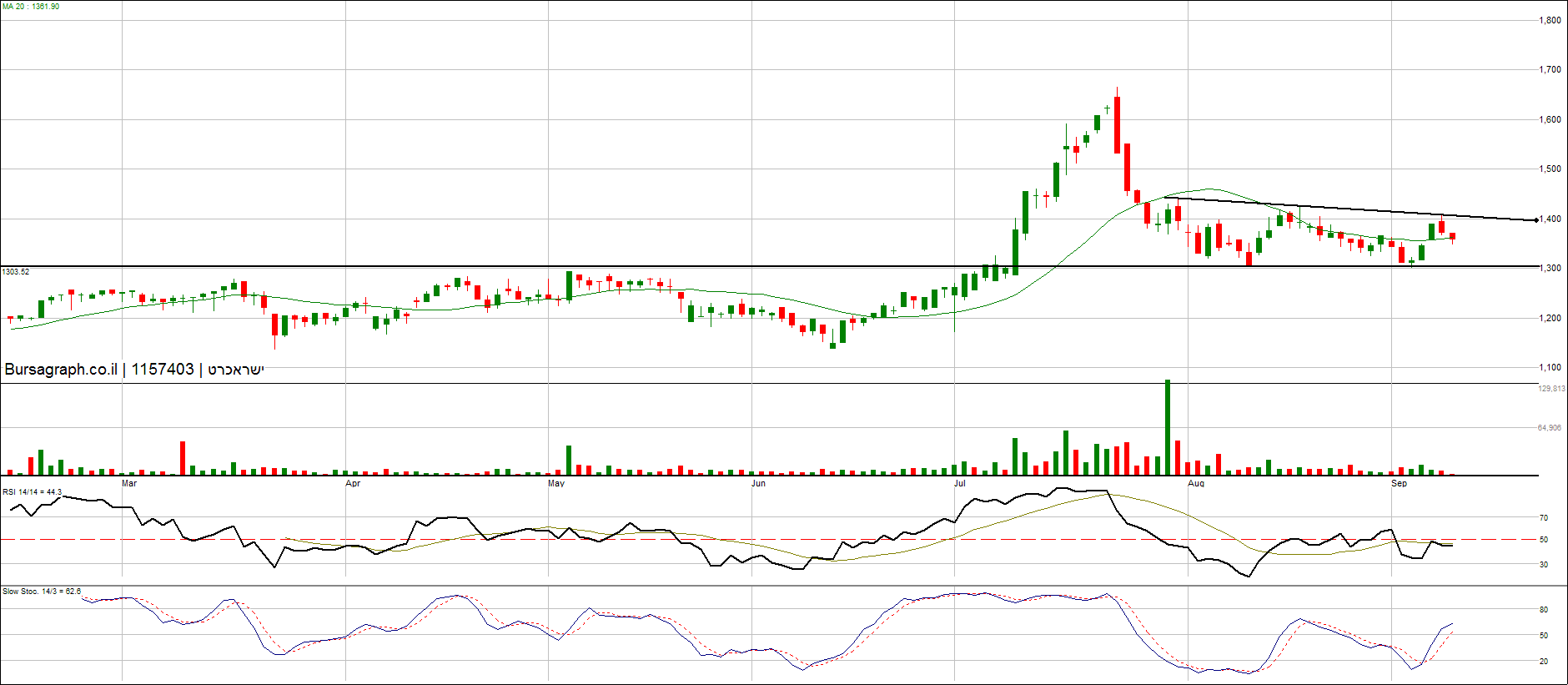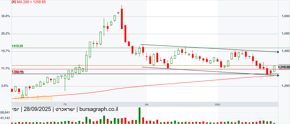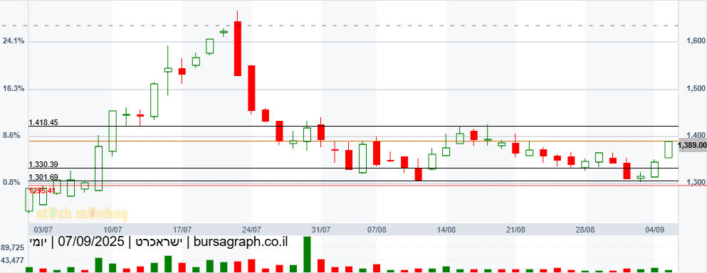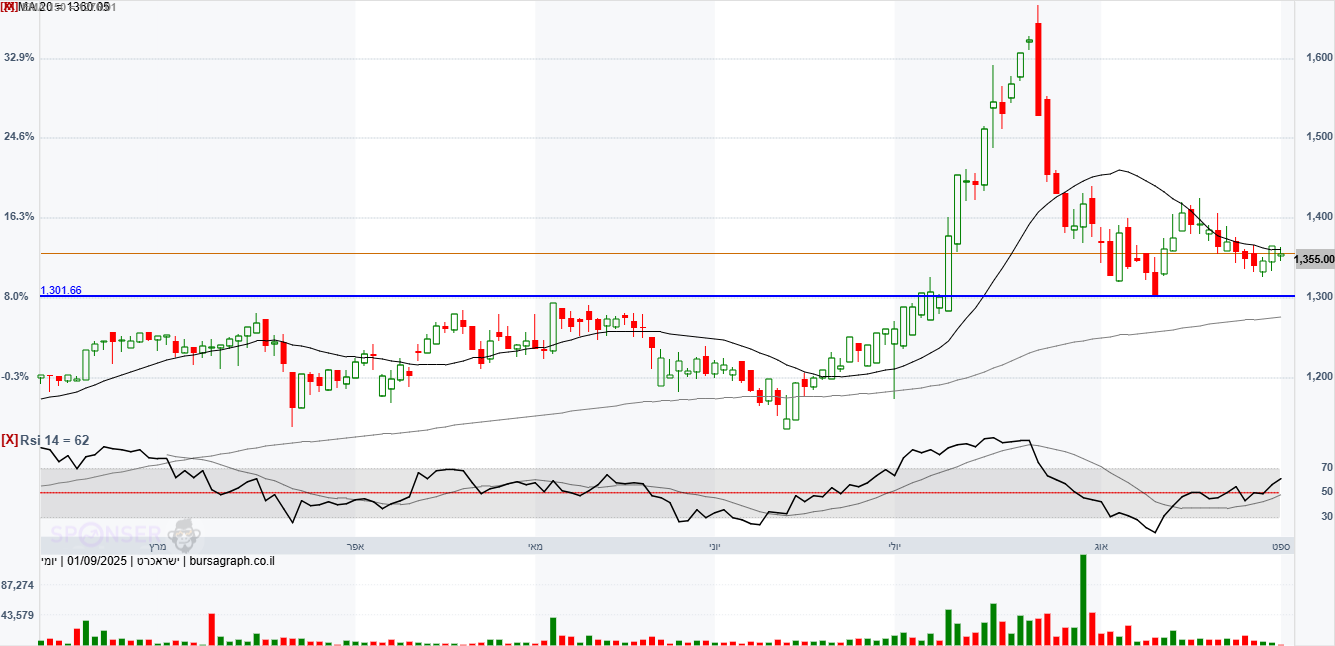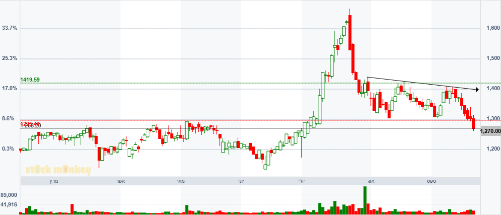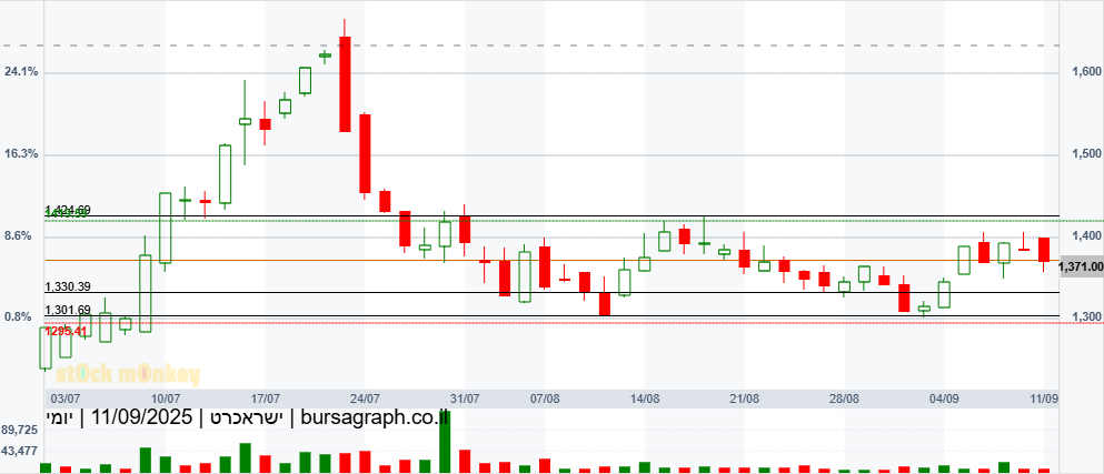 בסך הכל עלייה של 2-3 אחוז, אני מחכה להודעה מהותית שתאפשר לה להתבסס מעל 1,450. בינתיים מבחינתי מדובר בטווח דשדוש. מחזיק כמות גדולה, כרגע בהפסד של כ - 16 אחוז