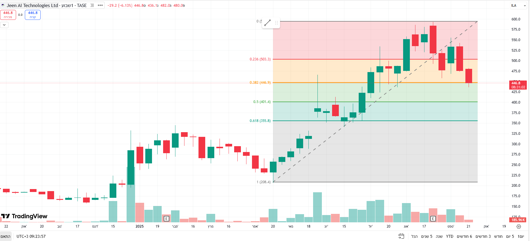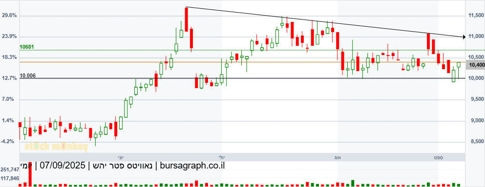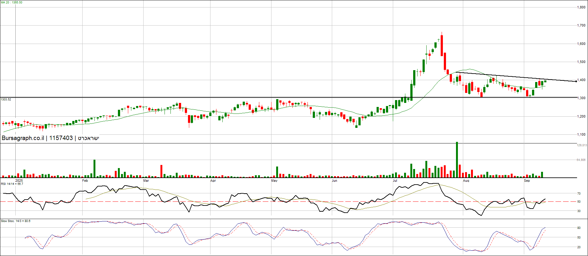 בסך הכל עלייה של 2-3 אחוז, אני מחכה להודעה מהותית שתאפשר לה להתבסס מעל 1,450. בינתיים מבחינתי מדובר בטווח דשדוש. מחזיק כמות גדולה, כרגע בהפסד של כ - 16 אחוז