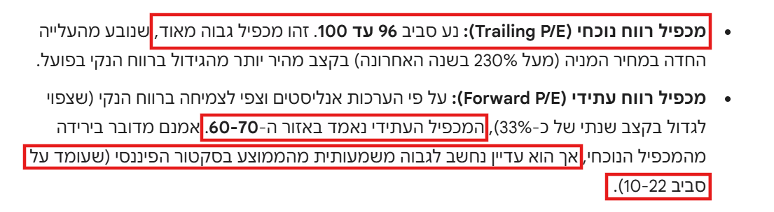 מכפיל נוכחי מעל 100 מכפיל עתידי 50+