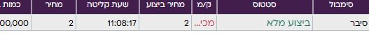 היום היא תיסחר סביב 1 אג'. אין אפשרות לשלוח פקודות מתחת ל-1. אם תישאר/תרד בהתאם לשער בארה"ב, אתם כלואים איתה עד שתעלה מעל. תשכילו לבחור את בחירתכם היום. ואם אתם לא מבינים מה המשמעות של זה תפתחו גרף של סייברוואן או כן פייט. לא מחזיק, לא ממליץ