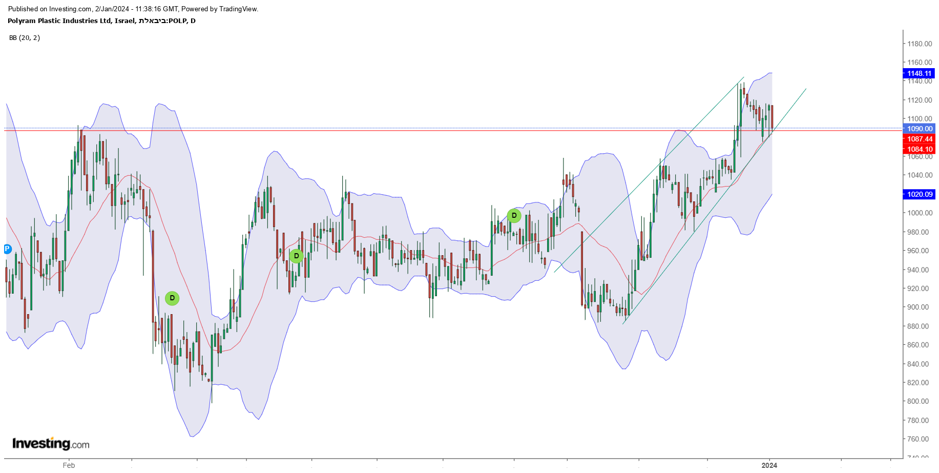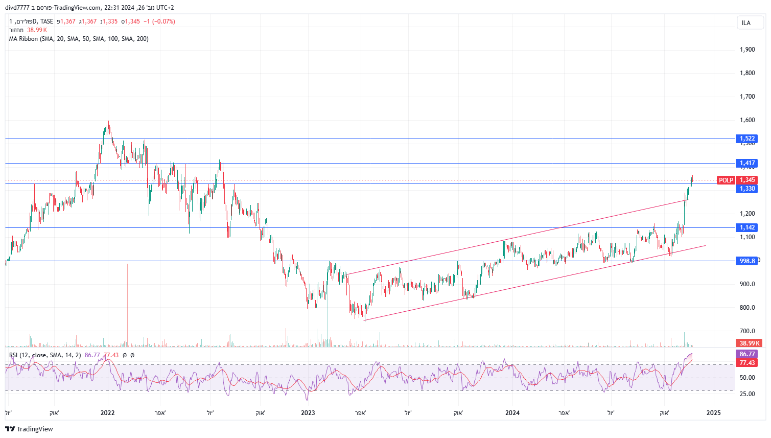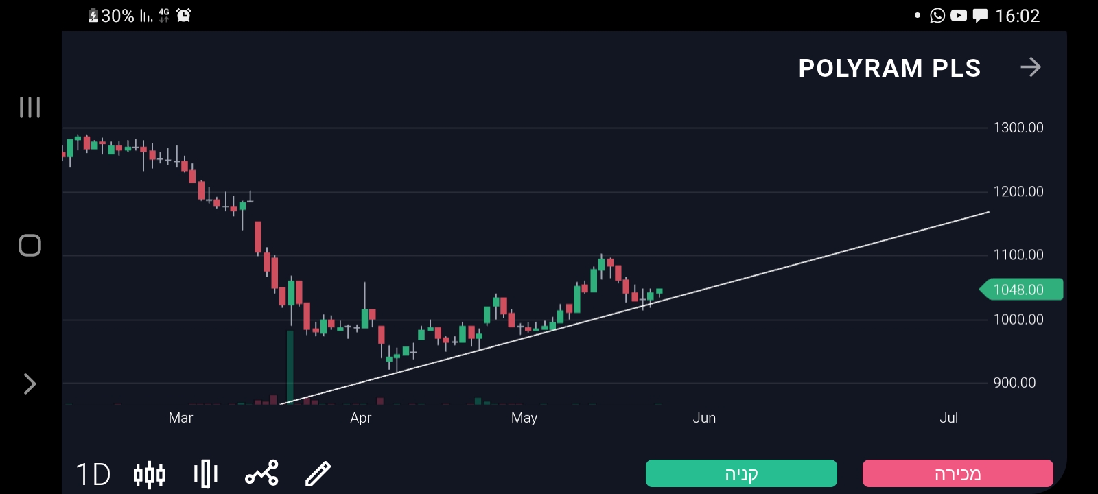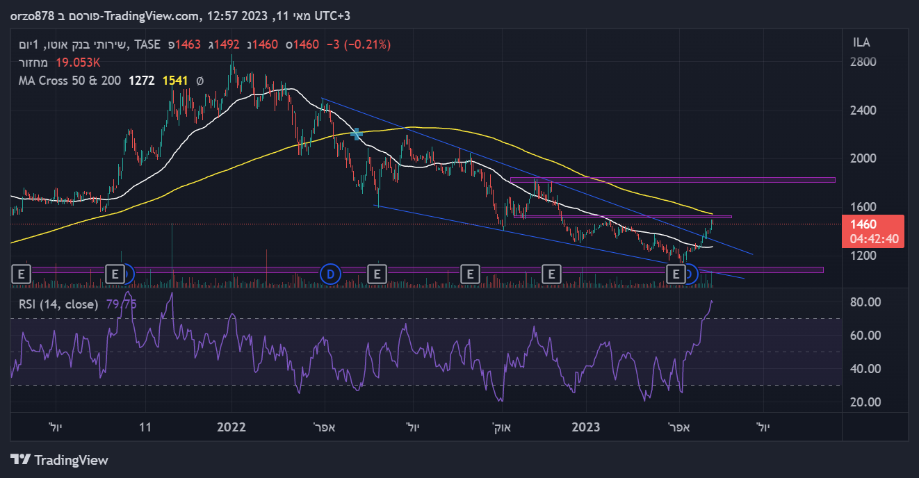 מעבר לפונד הנהדר שם, נראה שממוצע 20 דוחף למעלה לאורך כל מהלך האחרון, ונראה שיש התבססות מעל אזור 5050 שבלם את המניה למטה כל פעם. היום מחזור גבוה ונראה שיש קונה בנייר, סגירה באזור הזה מעולה לנייר.