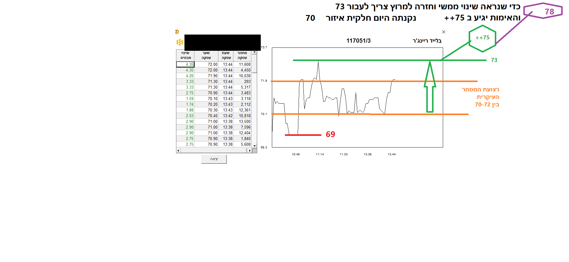 ממשיך להחזיר כמויות 67-70 = איזור קניות שלי . יעדים = 78>>80 -88 על המשך נעדכן שבוע הבא.