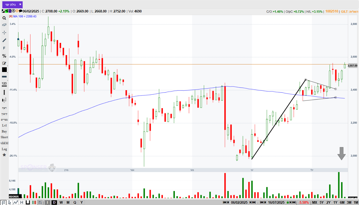בימים האחרונים יש מחזור גדול ועל אף מוכר עקשן יש קונים בצד השני. צריך שתיגמר לו הסחורה / שיגיעו עוד קונים אגרסיביים כדי שתיפתח למעלה. מחזיק.