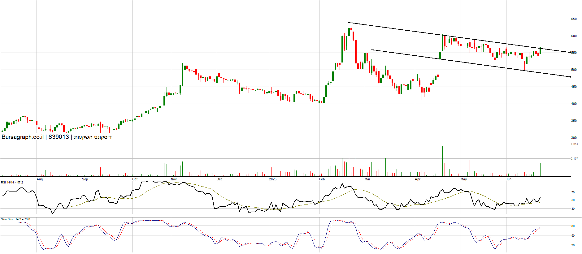 נלקחה דיסקונט השקעות 565~. מנסה לפרוץ תעלה יורדת