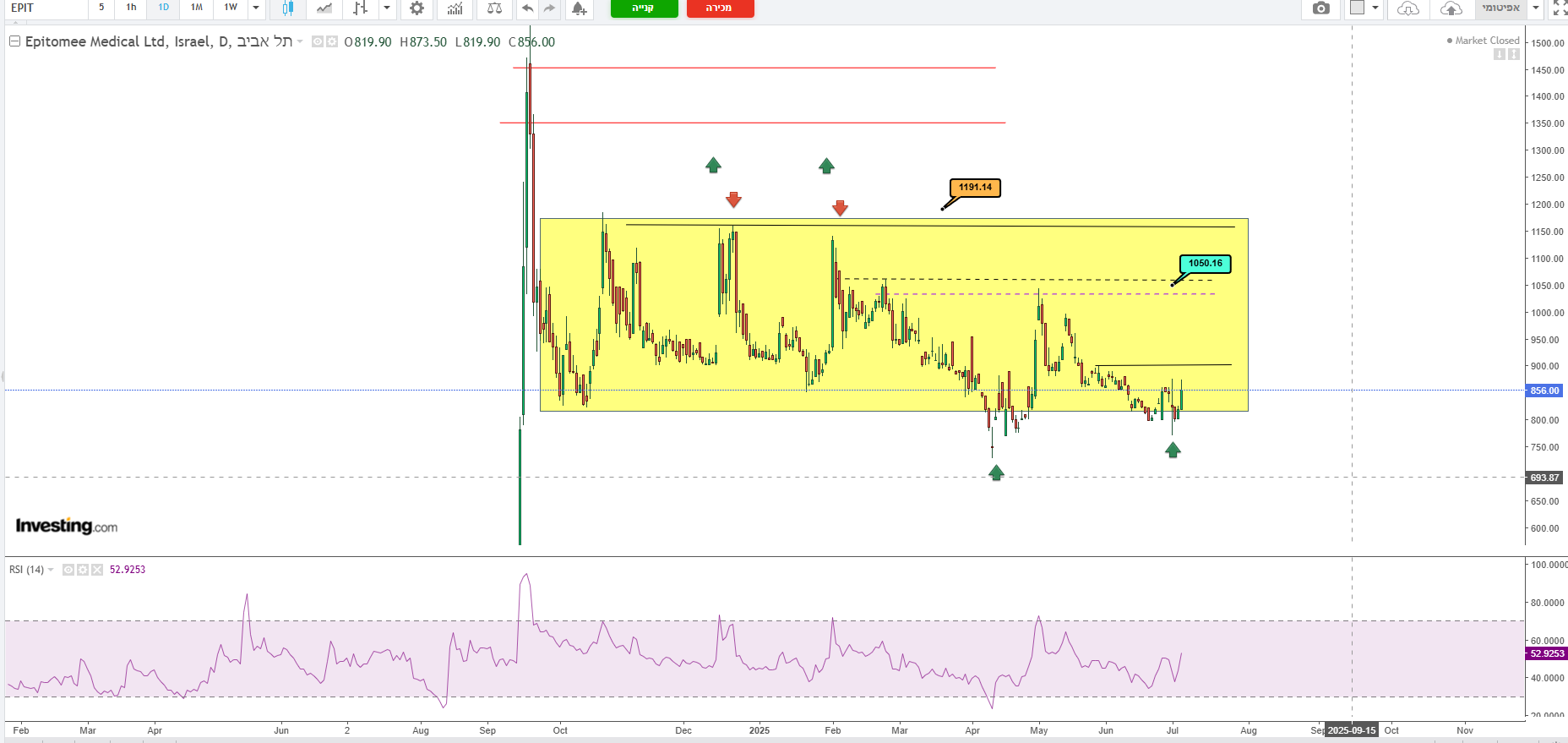 לאור זאת שהחלטתי שעדיף להיות בקרבת המשפחה בזמן המלחמה ולא לצאת לעבודה, יש לי זמן פנוי להיות יותר אקטיבי פה מאשר רק משתמש עוקב... אז מראש רוצה להגיד שאני קורא ולומד מכם המון ונעזר בכם המון... אחלה של מקום! לגבי המניות איירטאצ בירידה של כ 50% מאפריל ודיי מקרטעת כבר כמה שבועות, האם זה זמן טוב לשקול להכנס אליה או שהיא בדרך למטה? מתלבט אם לרכוש בשערים של עד 60 או לוותר. אידומו - אני בפנים משער 340 בימים האחרונים עושה רושם שהיא טיפה מדוממת מנועים עד כדי השתקה. שוקל אם זו נקודת זמן טובה לחזק או לשחרר או לחכות לתגובה של המניה עם סטופ היכן שהו. אלקטריאון - מחזיק משער 5850 והיא מאוד תנודתית בימים אלה... האם הייתם רוכשים עוד ממנה כעת בתקווה שתתחיל לתקן לאחר שהגיעה לשערים די נמוכים לה... שוב תודה לעונים ותשמרו על עצמכם,