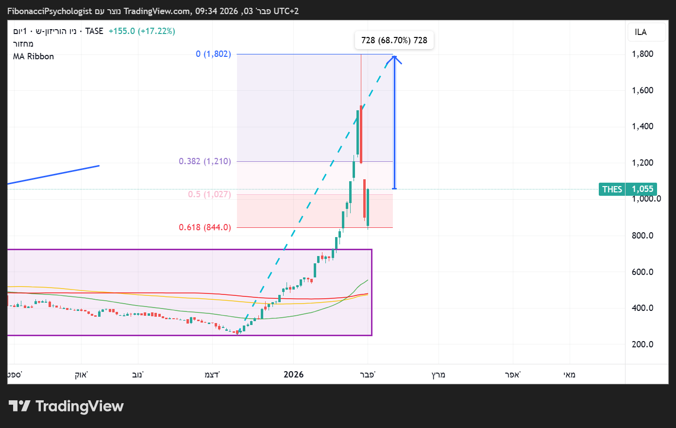 אבל 2 נרות שלא הצליחו להיתמך. מהלך הפיבונצ'י הסתיים וצריך למצוא כאן תמיכה חדשה ובאמת אי אפשר לדעת איפה זה יהיה 🌹