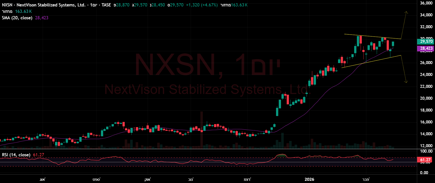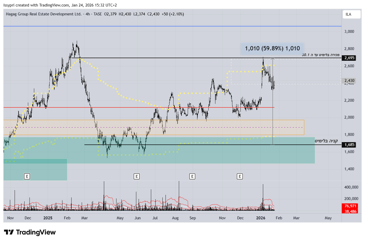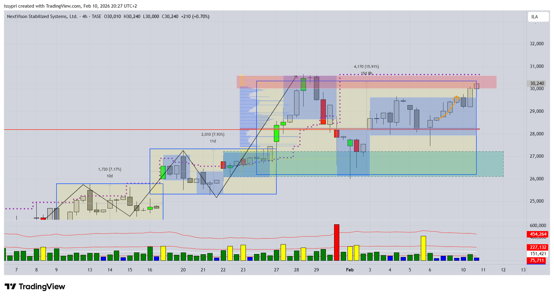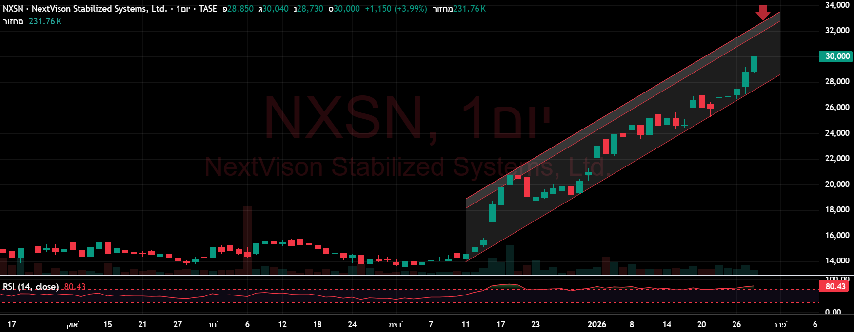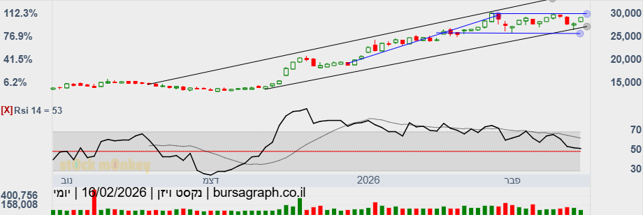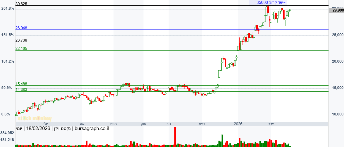 רואה אותה על שולחן הטכני של אליפלט.עשויה בהחלט לחזור אל יעד השיא-30750,ובעקבות ההיפוך הדרמטי שנתקבל היום. ואחרי המימושים בביטחוניות,ואולי אם תיכנס עוד הזמנה/נות נוספות לקראת הדוח הרבעוני הראשון של 2026, והתוצאות החיוביות של הדוח השנתי של 2025,קים סיכוי רב שגדול מהסיכון,שגם הדגל יפרץ!? ונכון,לא תמיד אני "פוגע" במטרה באמצע!
