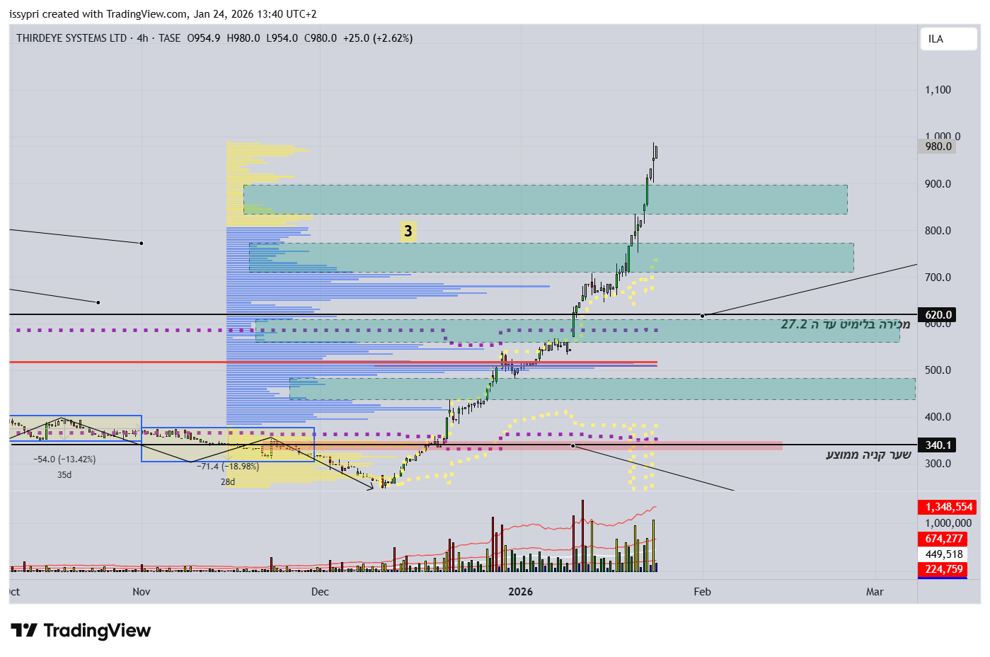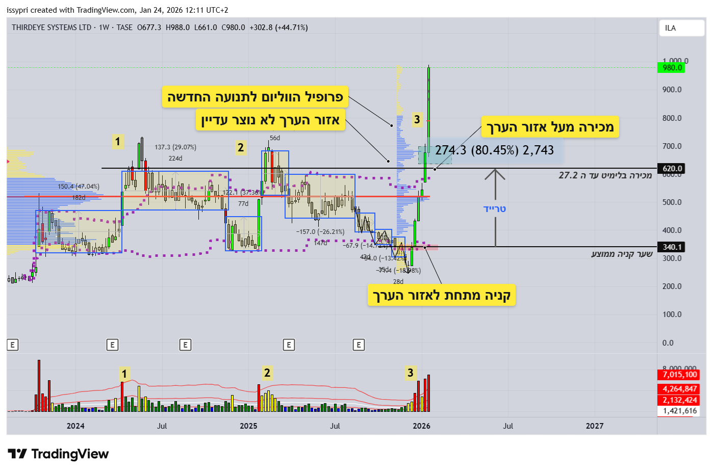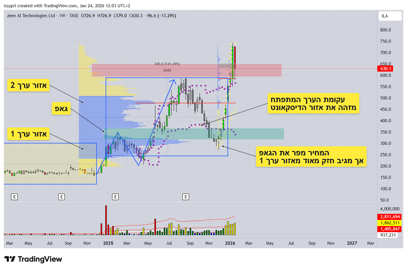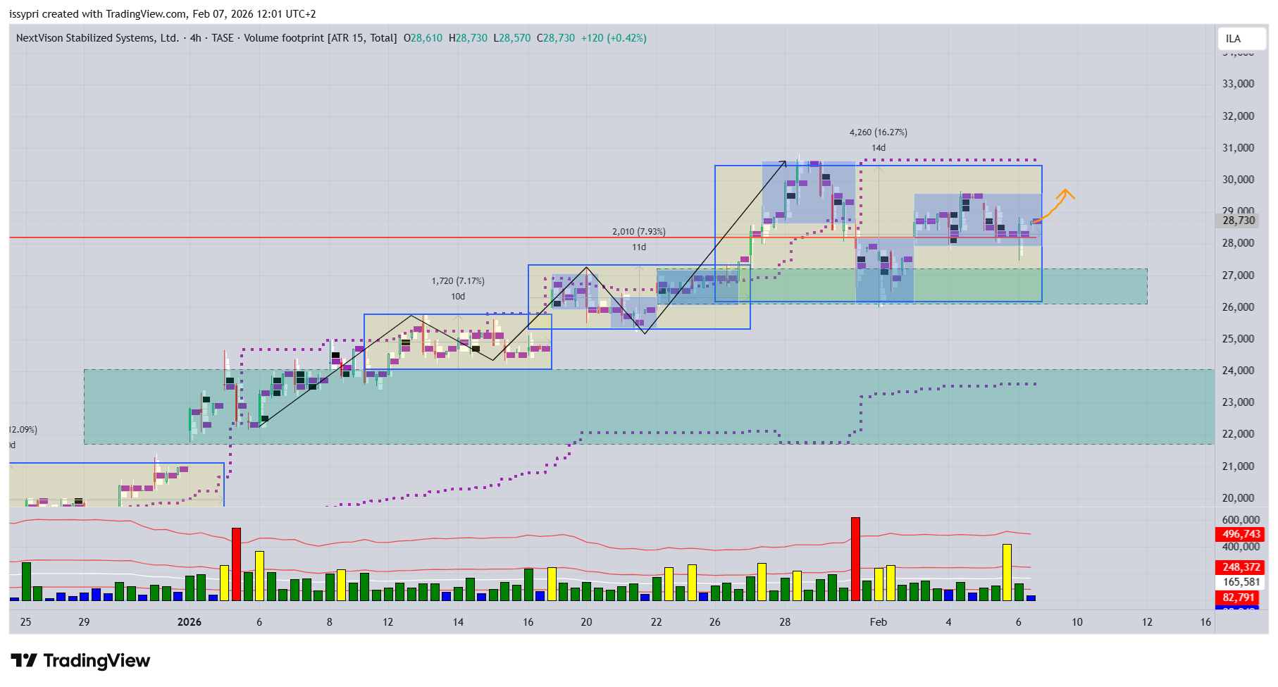 רואה אותה על שולחן הטכני של אליפלט.עשויה בהחלט לחזור אל יעד השיא-30750,ובעקבות ההיפוך הדרמטי שנתקבל היום. ואחרי המימושים בביטחוניות,ואולי אם תיכנס עוד הזמנה/נות נוספות לקראת הדוח הרבעוני הראשון של 2026, והתוצאות החיוביות של הדוח השנתי של 2025,קים סיכוי רב שגדול מהסיכון,שגם הדגל יפרץ!? ונכון,לא תמיד אני "פוגע" במטרה באמצע!