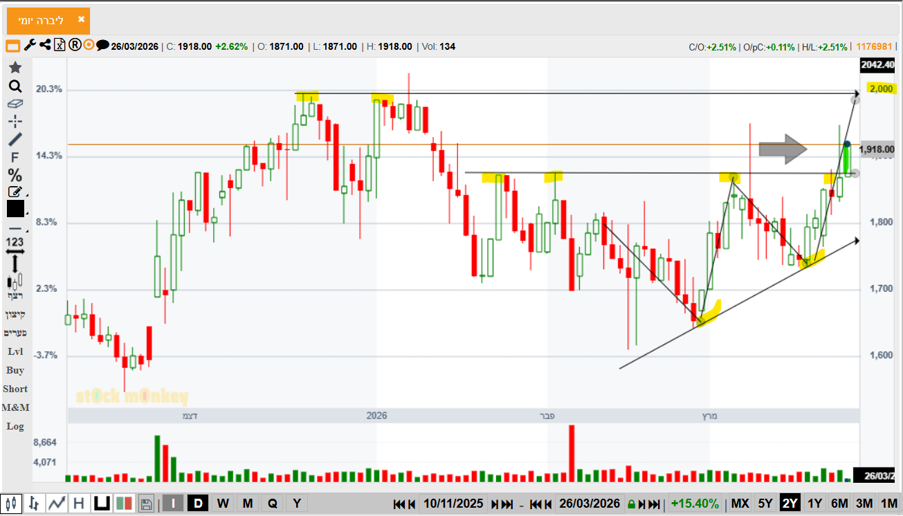 שלום וברכה נכנסתי לליברה בשער 1590 לפני כמה חודשים במנה ממש קטנה כדי להתרשם מהמניה. מאז לא מצליחה להיכנס שוב. אשמח לדעת מה דעתך מבחינה טכנית עליה כעת?