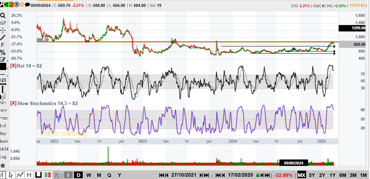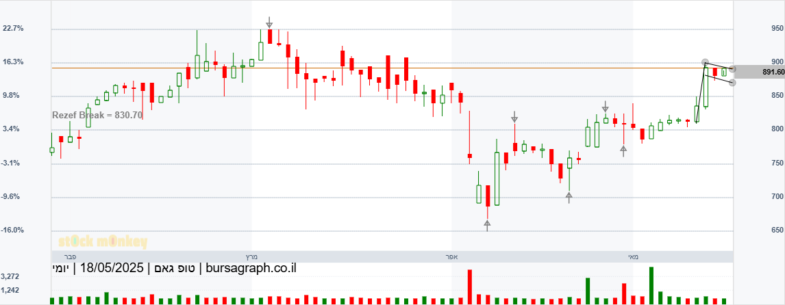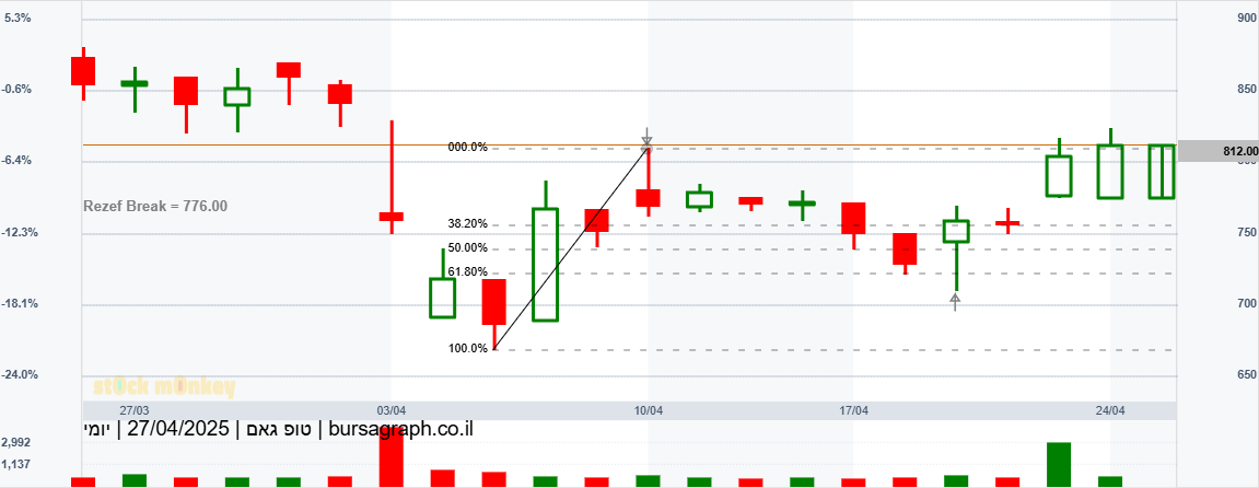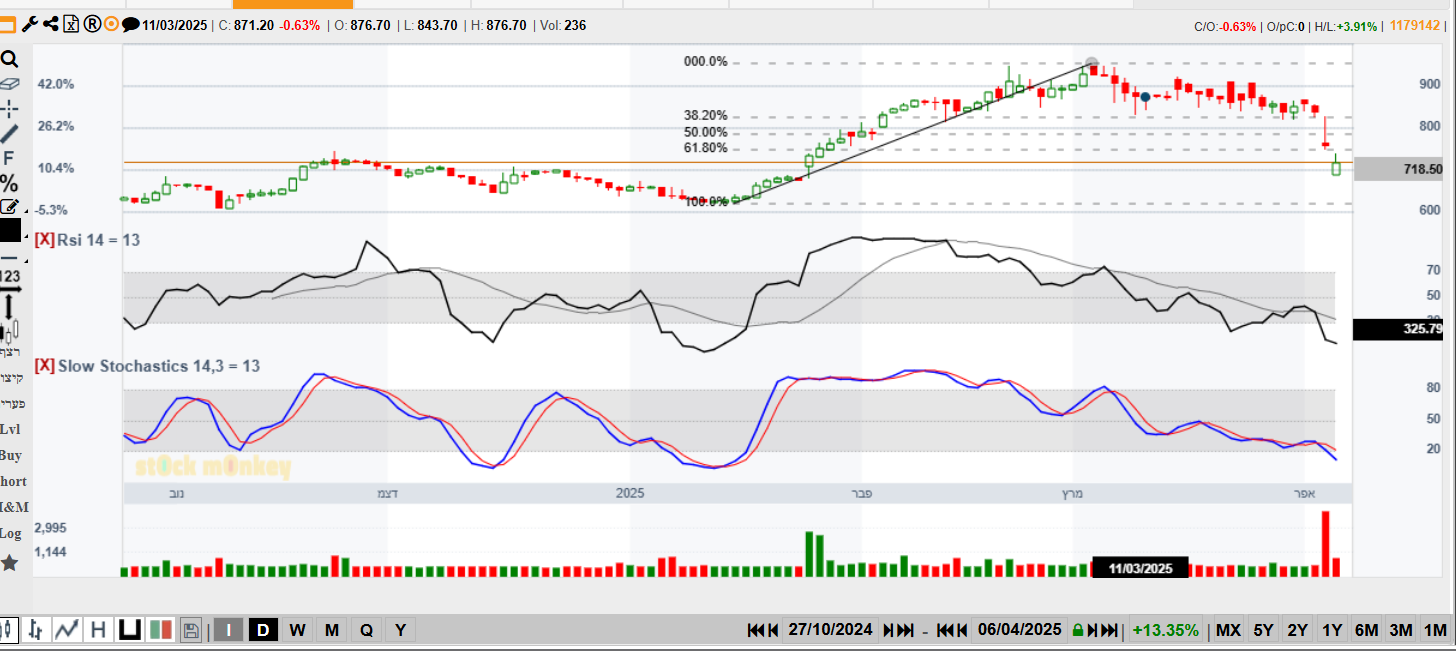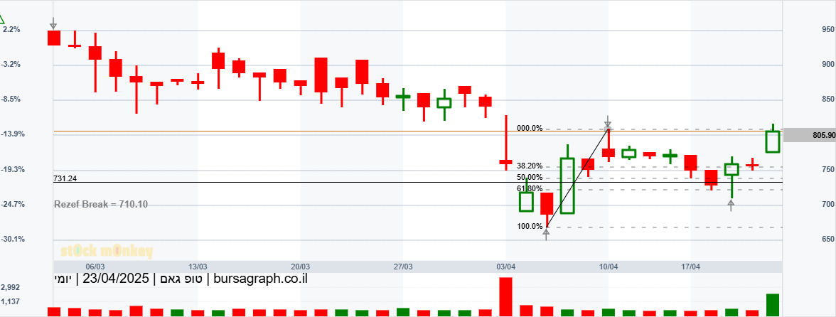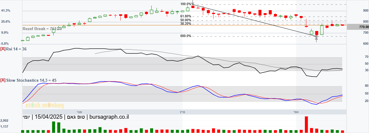 מושכת אותי כעת, אז מצאתי אותו. דא עקא שזה פיבו קצת דפוק בגלל התמיכה רק ב 61 + זנב מתחת ולכן גם היעד לא גדול רק עד 860. כמובן בכפוף לפריצה היום. אם יש מישהו עם גרף יותר משכנע אשמח. זה מנייה מדהימה שכבר עשיתי עליה יפה ויודעת לתת טוב למי שיש סבלנות. היה לה דוח מצוין.