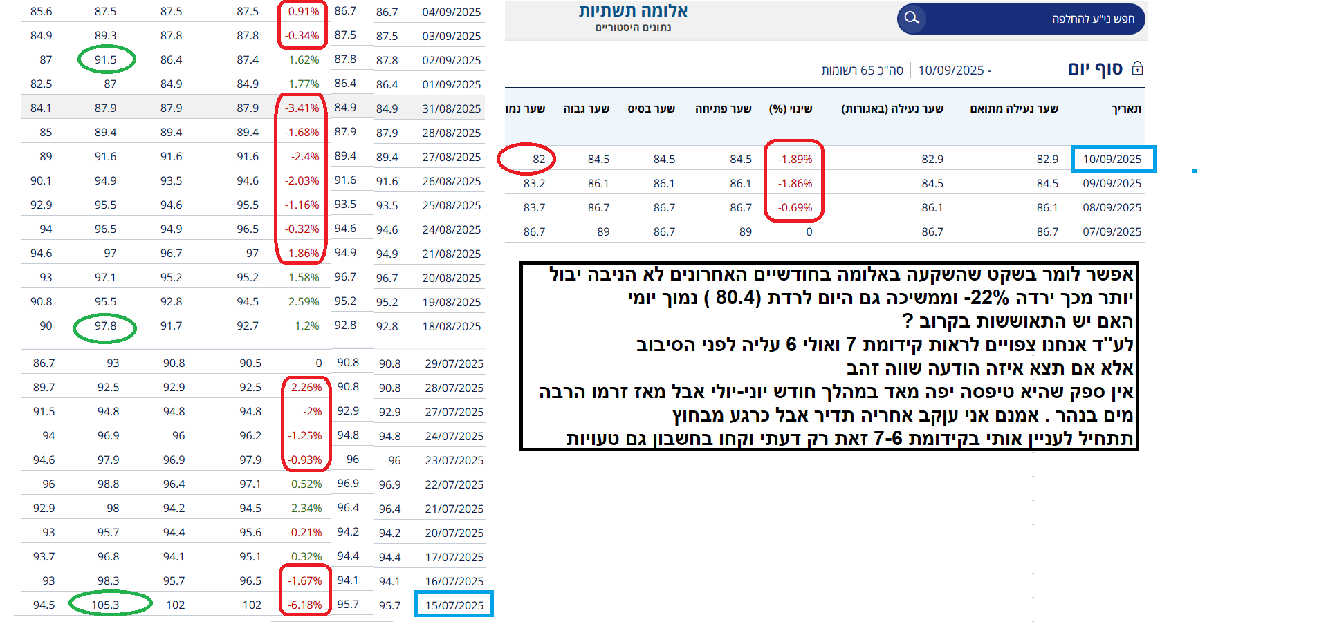 אלומה מה שנקנה אתמול 71.5 נמכר 80 (ללת)