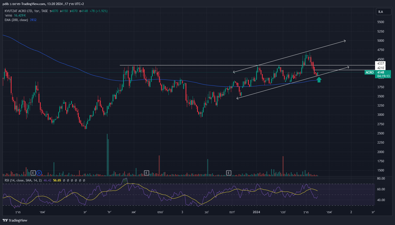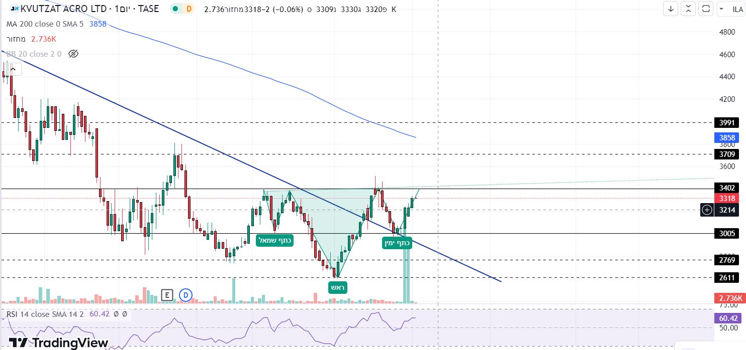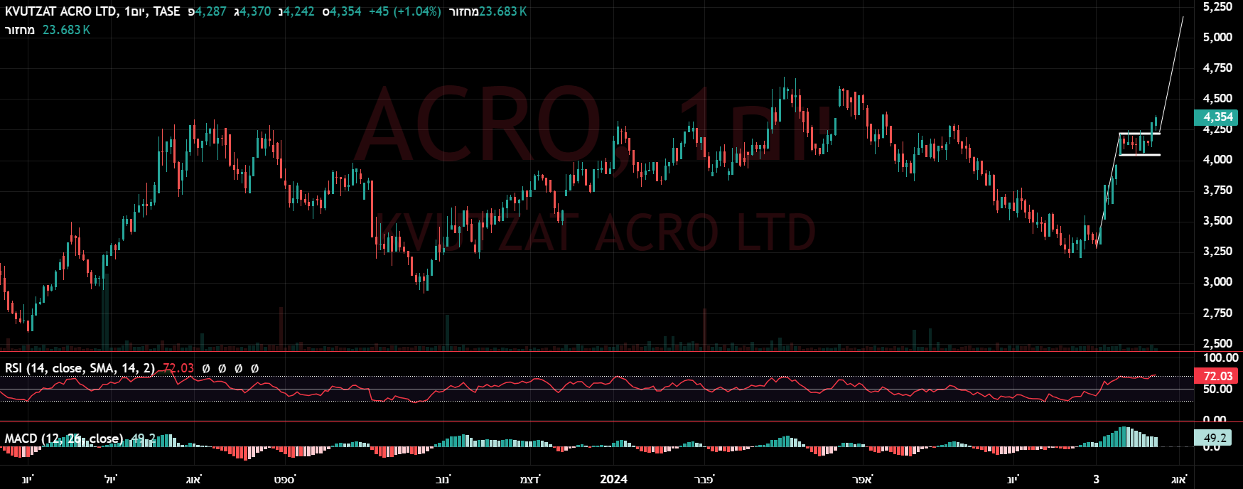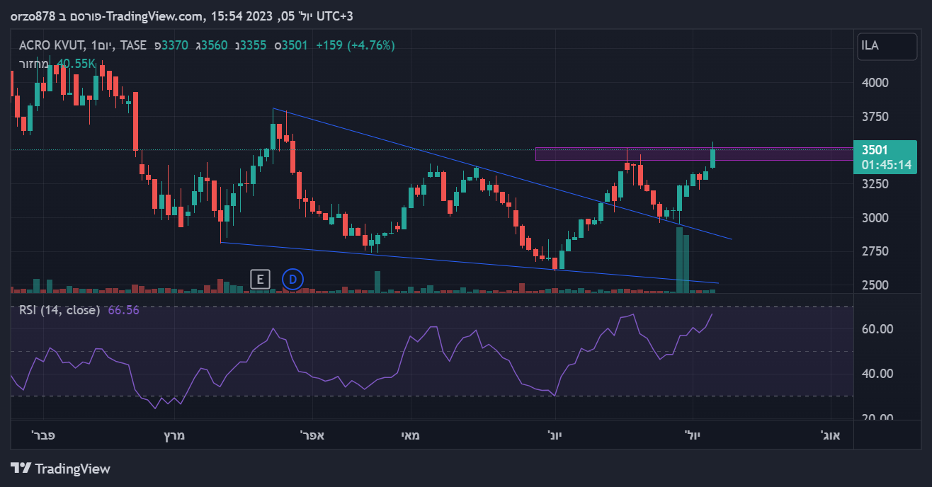 אקרו - פרצה קו מגמה יורד (שבועי) ונראה