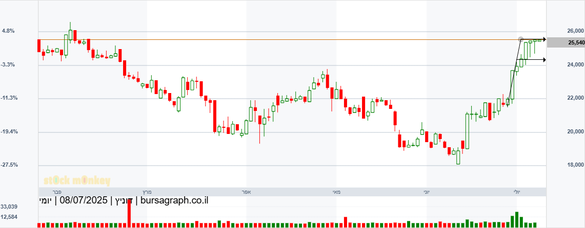עשתה פריצה יציבה של המלבן הבלתי נגמר וכבר מחזיקה מעליו 3 שבועות יעד 30 אחוז לאזור 6940 מחזור עולה יפה + מוסדיים שנכנסו חזק👍
