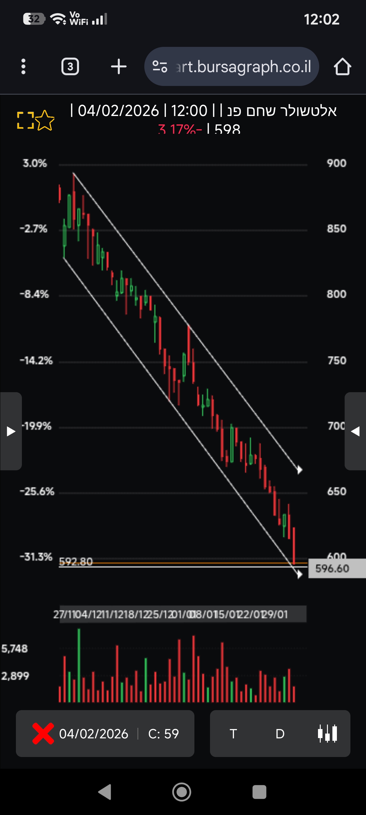 אין ספק חלשה ביותר אבל לפי דעתי מתבקש תיקון לאזור ה 700 ואז בחינה מחדש..... מחזיק לא ממליץ שוקל לחזק עוד שבוע הבא.