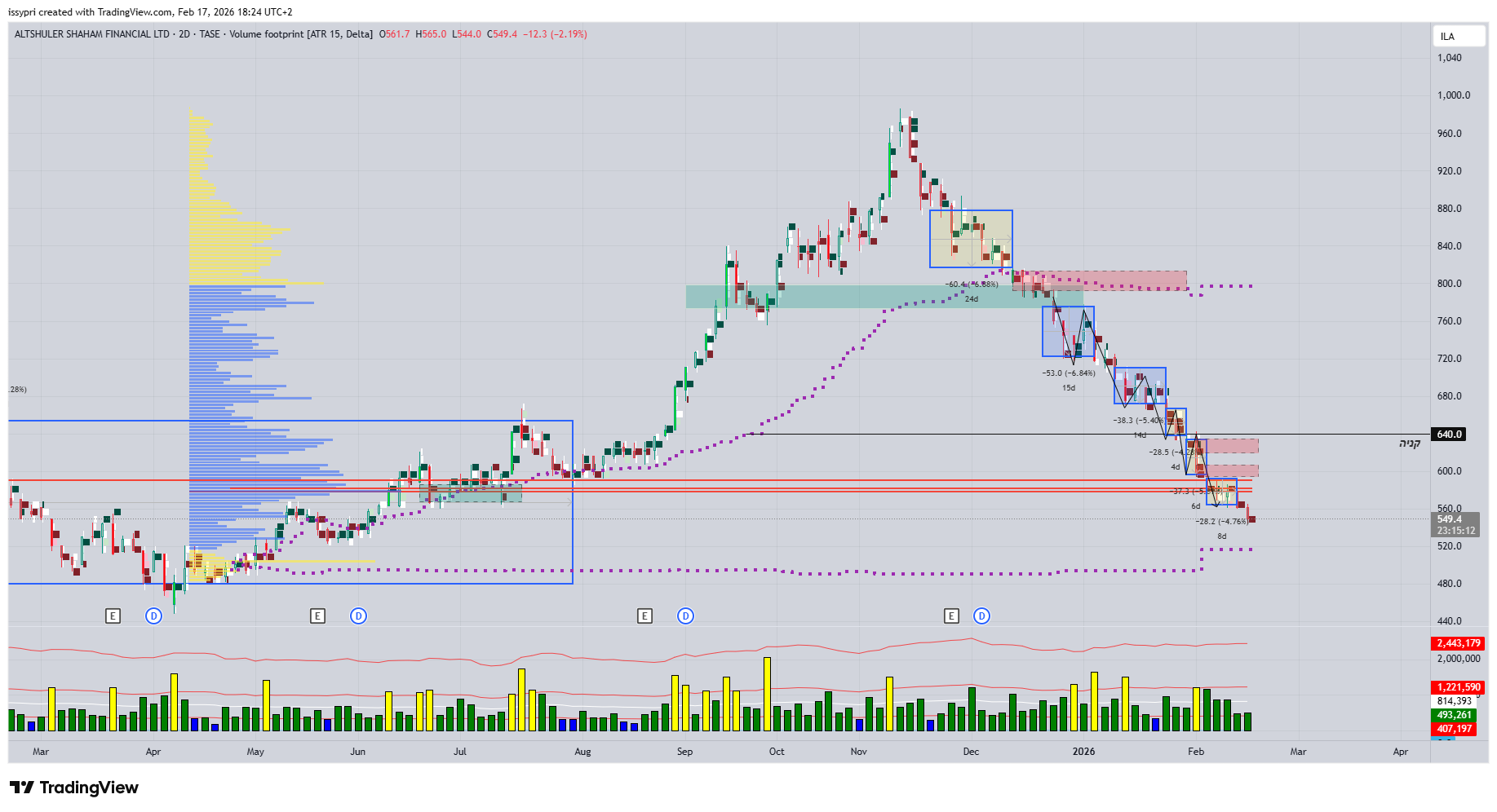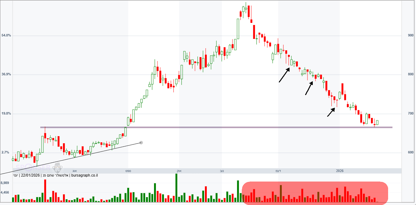 של הנייר, תראה בגרף את כמות הימים היורדים ומחזורי המסחר מנובמבר ועד היום וזה בתקופת שוק טובה.