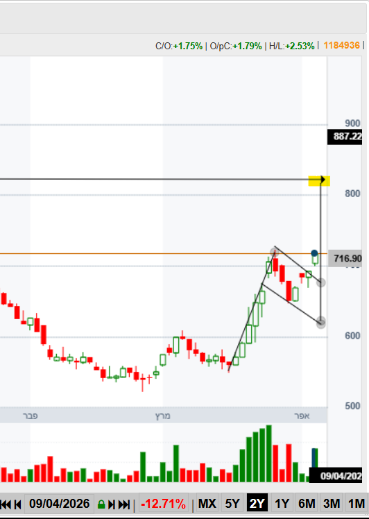 בימים האחרונים (הירוקים). פורצת היום גבוה של שישי ומה שהיה בעבר התנגדות. נראית טוב מאוד. המומנטום שם השתנה ויש המון בשר.
