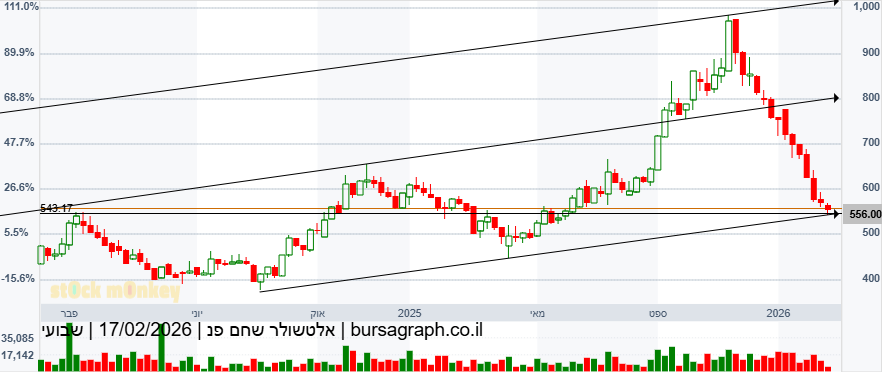 שעה 10:40 מחזור של 14000 אלף ש״ח, בוא בזמן שכל המניות אחרות מחזורים מטורפים, כמו בכל סקטור יש פחות או יותר היגיון, למשל אם ניקח את הבנקים כולם עלו בשנתיים האחרות את אותו עלייה, גם למשל עם דיסקונט מרוויח קצת פחות עדיין הם יתנו את אותו בנצמרק, כנ״ל ביטוחים, להבדיל אלטשולר עדיין מנהלת קרוב ל180 מיליארד ש״ח יותר ממור אנליסט ילין ושווה למיטב, ועדיין כל אחת מהם שווה יותר בכפולות מאלטשולר, עכשיו מבנה ההחזקה באלטשולר 55 אחוז מוחזקים על ידי אלשולר שחם ועוד 15 אחוז בידי יאיר לוינשטיין מה שאומר שיש בציבור 30 אחוז שמעורך אולי בארבע מאות מליון, שזה כלום כסף, אין אגחים ושום דבר, אנחנו רואים שאף אחד לא נוגע ורוכש בתור בעלי עניין, או מישהו חדש שמנסה להיות בעל עניין, וזה אומר דרשני, המחוזרים בשלשה חודשים האחרונים דלים מאוד, הרי הם מחלקים כל רבעון דיבדנד יפה למה הם לא רוכשים בזה חזרה? יש לי שלש ספקולציות 1 שהם לא מאמנים בחברה ולכן לא מגדילים 2התפרסם שהם רוצים להכניס את הפעילות שלהם הפרטית לציבורית בתשלום של מניות אז אולי שווה לקבל במניות ככל שהם נמוכים 3לתת הצעת רכש לשאר המניות של הציבור למחוק אותה מהמסחר זה כולה ארבע מאות מליון שח במחיר של המנייה של היום ועוד כמה שנים לעשות הנפקה מחודשת במליארדים רבים, אין שום המלצה לא איש מקצוע הכל זה מחשבות בע״מ