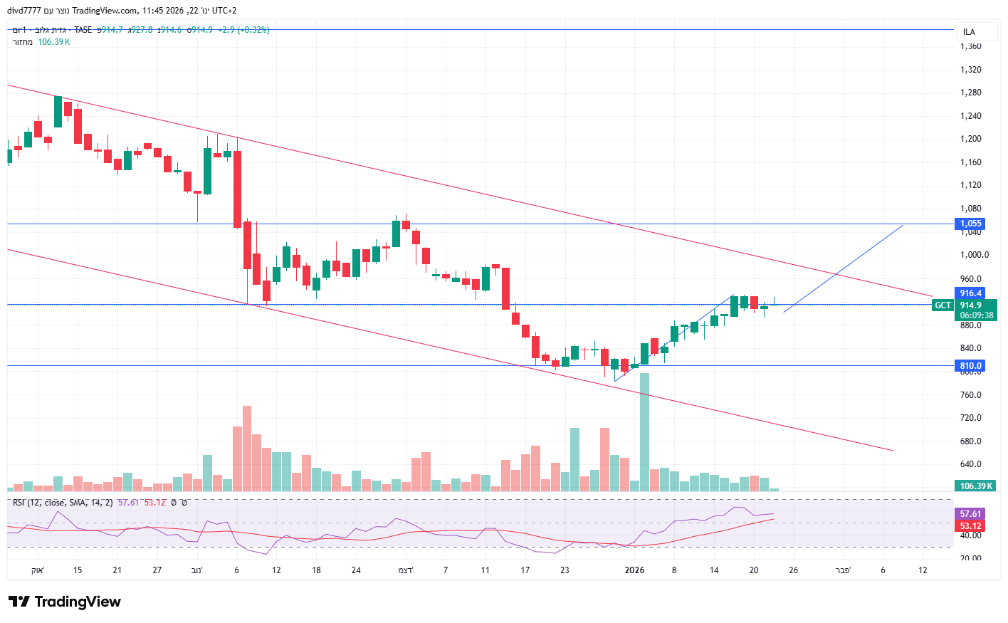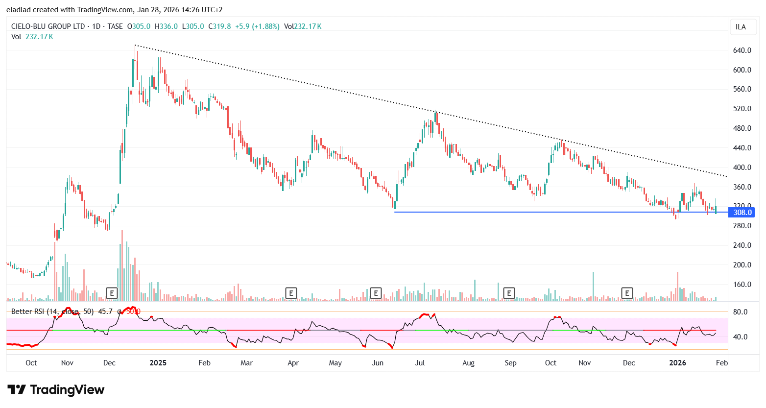 מתחילה להתקרב לקצה תעלה יורדת. אם יירד שם החשש ממינוף נוסף בעקבות סיטיקון, זו אחת המניות שיכולה לתת ריצה משמעותית לדעתי. עד אז, יכולה להיות תנודתית ולא לבעלי לב חלש.