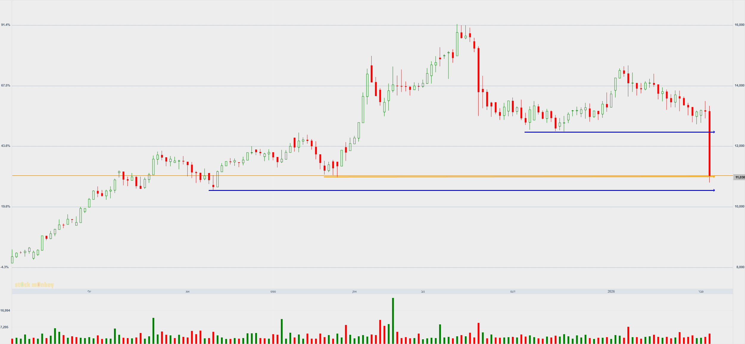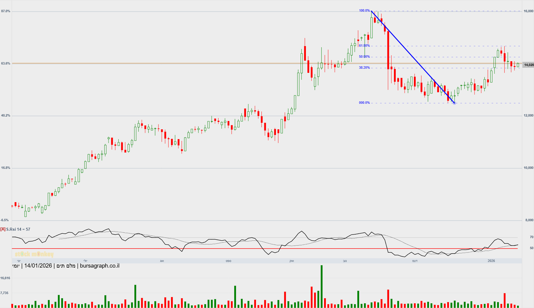 אבל תראו איזה יופי...לאחר עלייה יפה שבו הגיעה לשיא יצאה לתיקון עמוק ולאחר מכן דישדשה קצת והתבססה מעל רמת 12,500.ולאחר ההתבססות שבדרך כלל מבשרת על יציאה קדימה....הגיעה לתיקון פיבו שלישי בדיוק רב והיום קיבלה גג בול על תיקון פיבו שלישי.....💡.לפעמים הטכני עובד.....😛