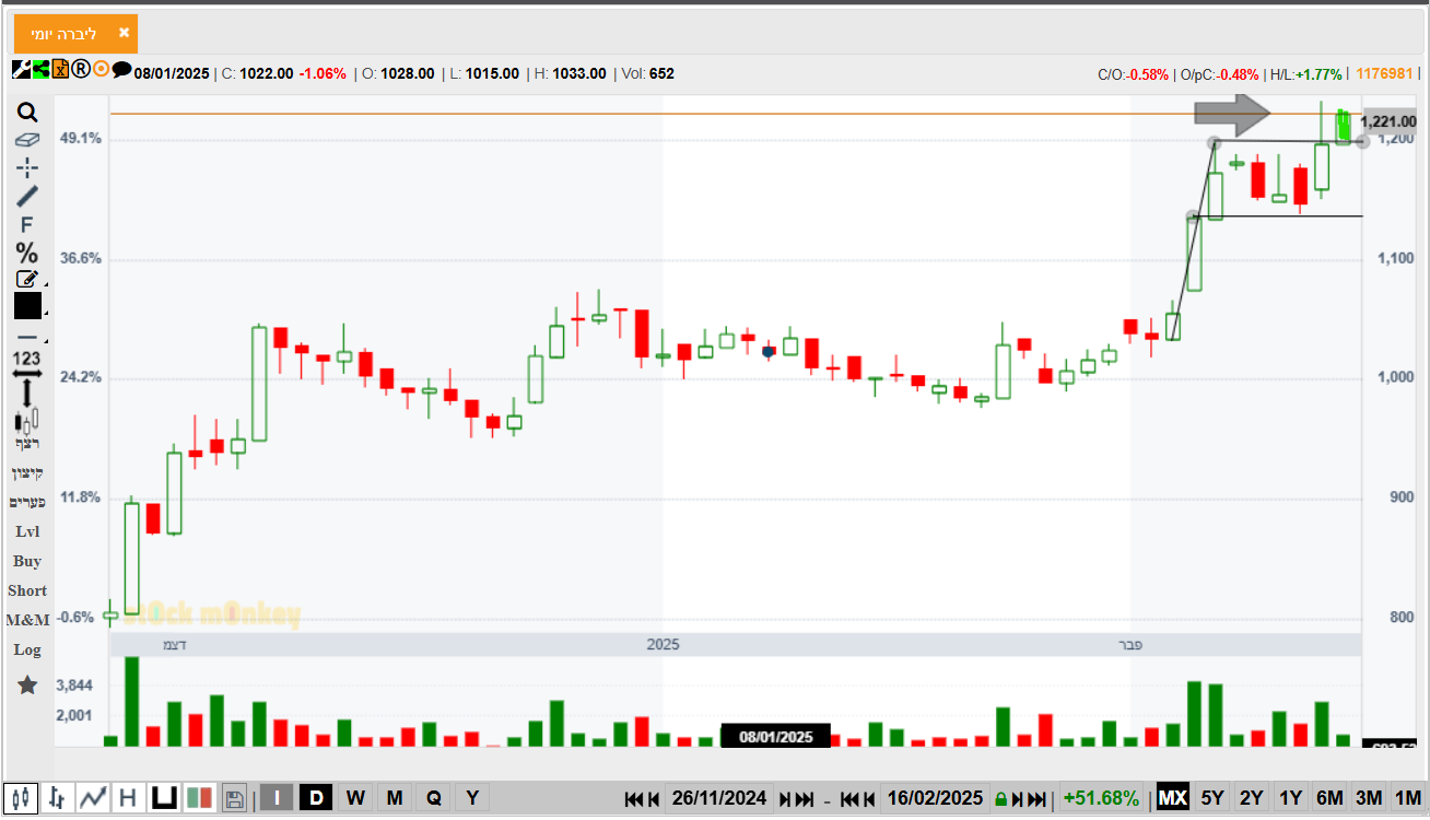 לפרוץ את הקו האופקי הנוכחי במהלך השבוע. מוסיפה תיוג כדי שההודעה תקפוץ כאשר מחפשים את המניה