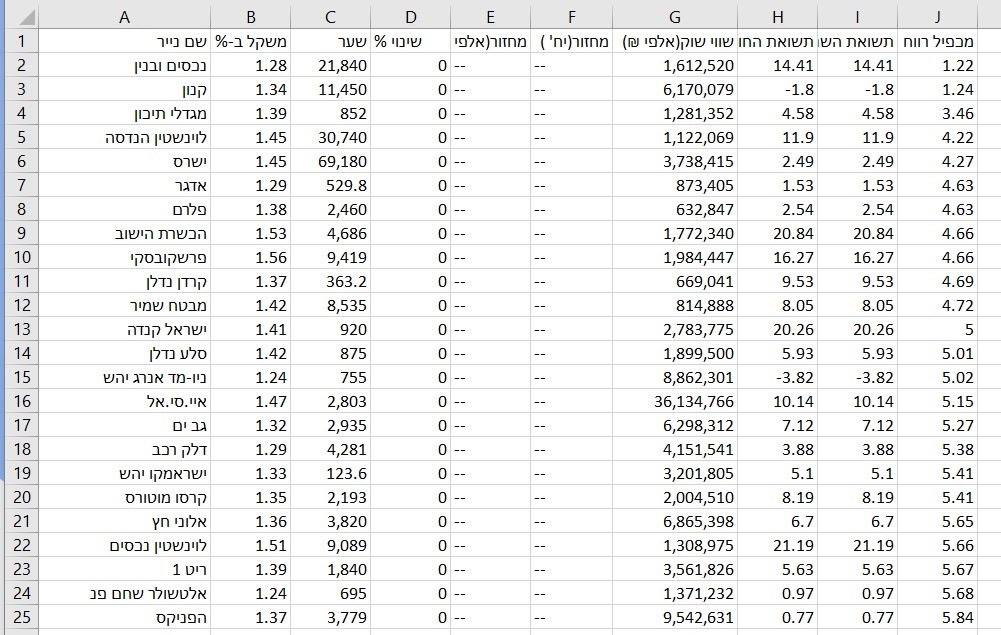 מכפילי הרווח של חברות הנדלן בשפל, בחלקן לדעתי השוק הגזים כלפי מטה, למשל - מגדלי תיכון, ישרס, אדגר, הכשרת הישוב - כולן במכפיל רווח נמוך מ-5. האם באמת שווי הנכסים והרווחים העתידים יפגעו עד כדי כך בגלל העלאת הריבית? ימים יגידו..
