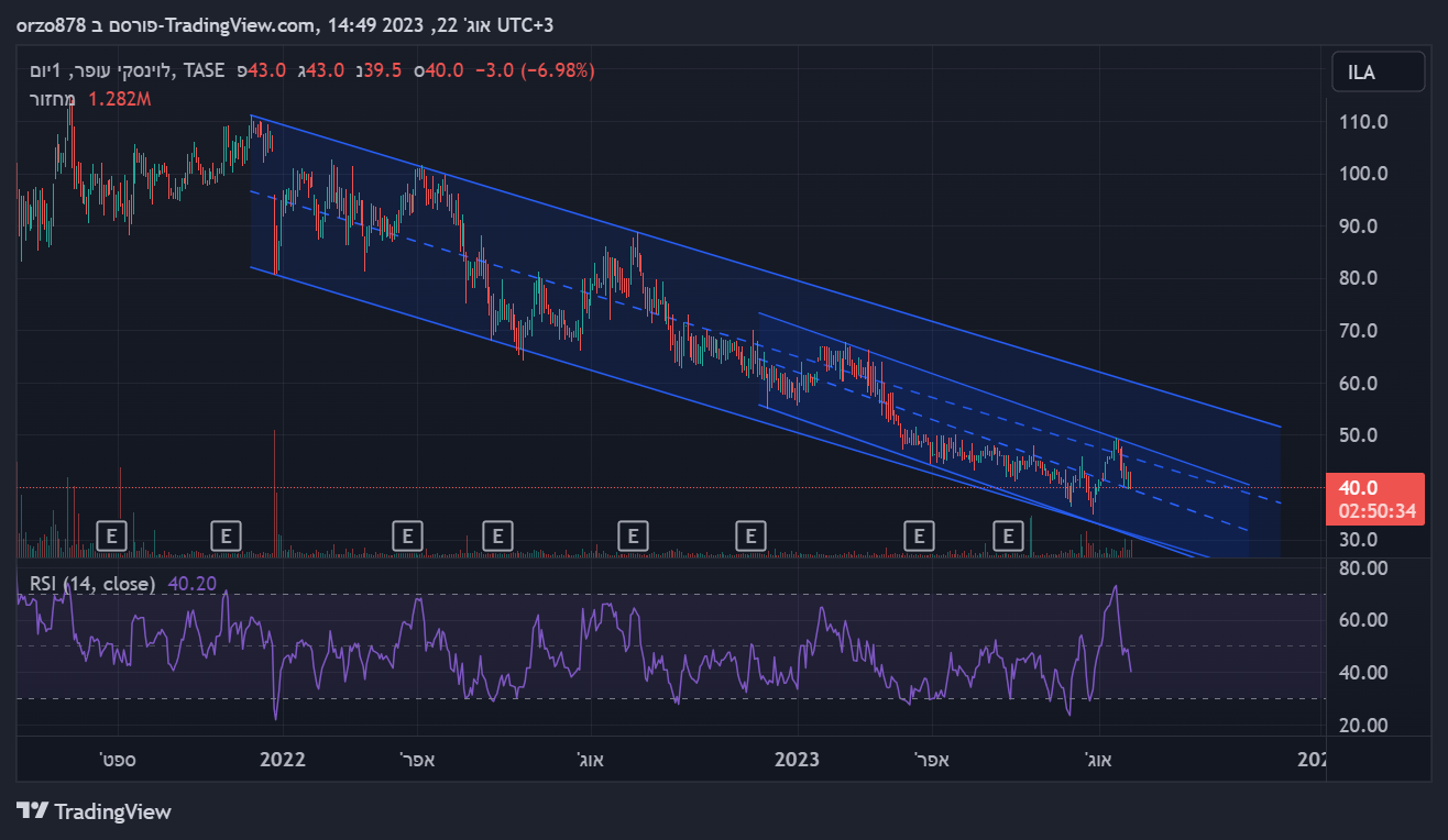 באזור 40 פתחתי גרף אחרי תקופה רואה הם עדיין נעים בתוך תעלה יורדת גדולה (ויש עוד אחת מינורית). מחזורים התעוררו קצת לאחרונה, אבל מדהים לראות מה עשו למניה