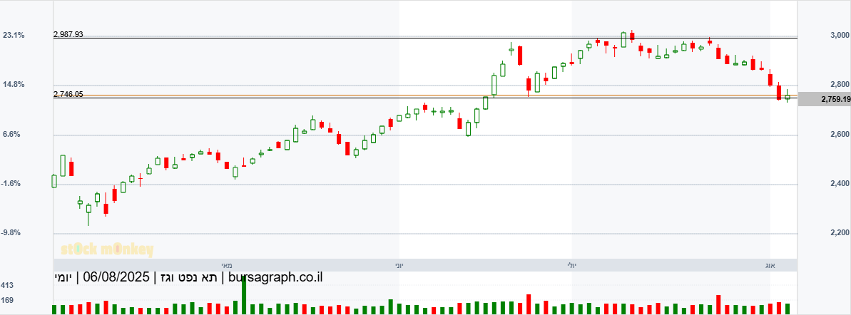 ישראמקו גרף יומי נתקלה בקצב תעלה