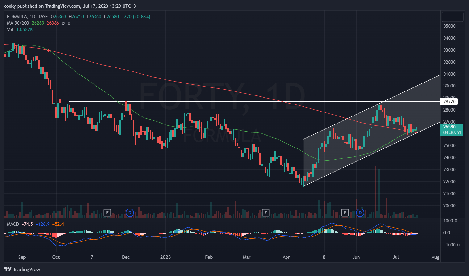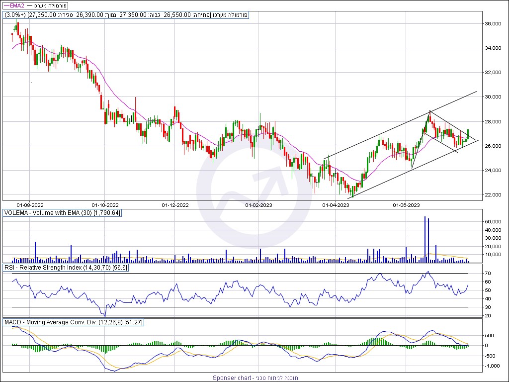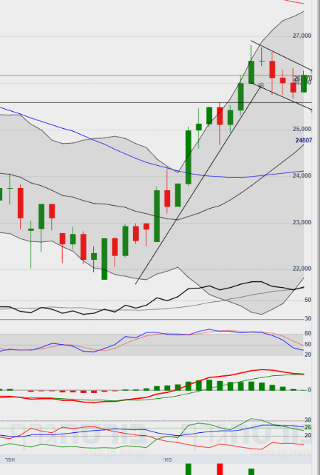 בגרף יומי רואים בהחלט התנגדות שהפכה לתמיכה. על פניו הדגל יכול להעיד על המשך עליות כל אזור 27000-28000 אזור התנגדות קשה שמה יהיה המבחן (לטעמי בכל אופן).