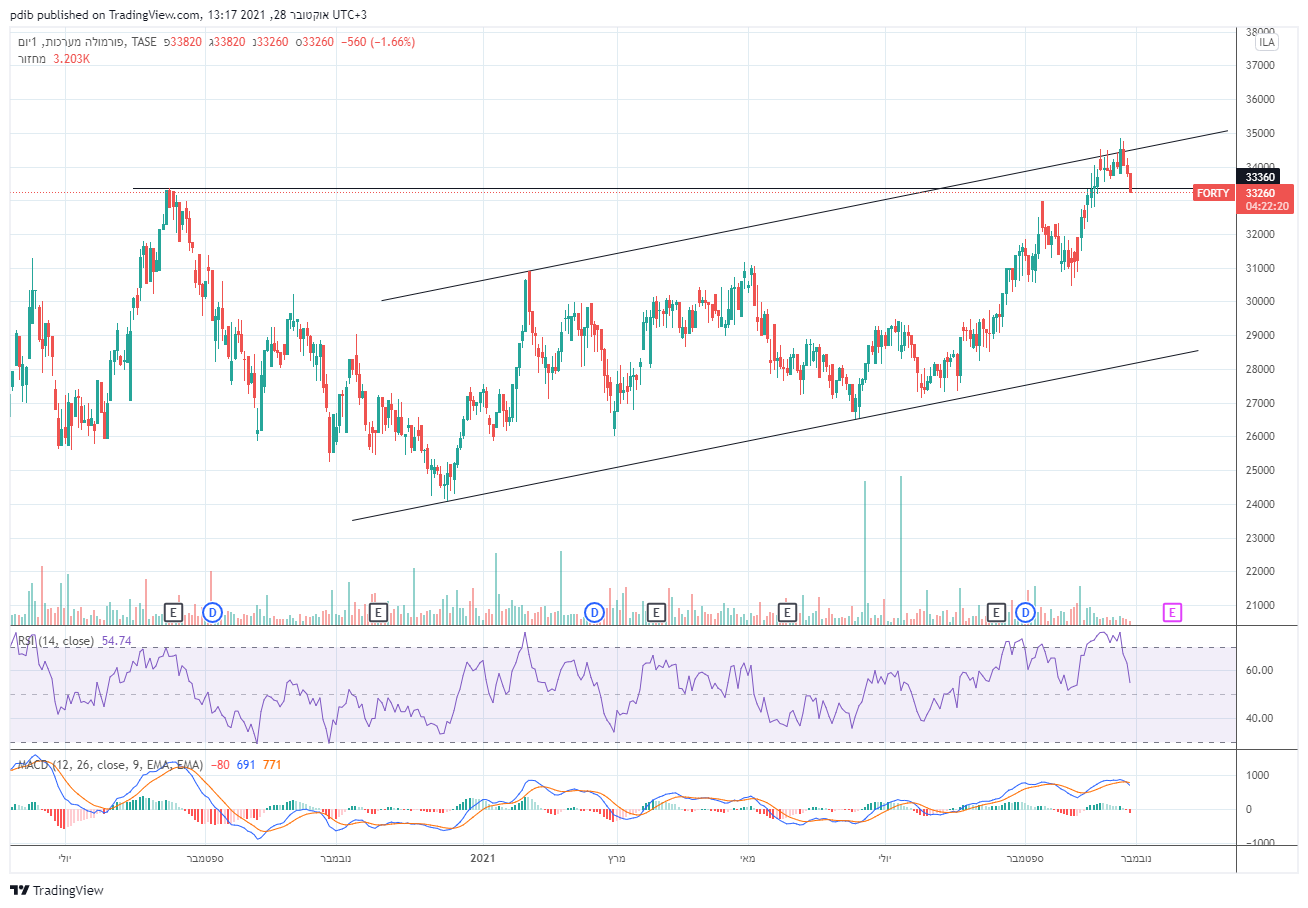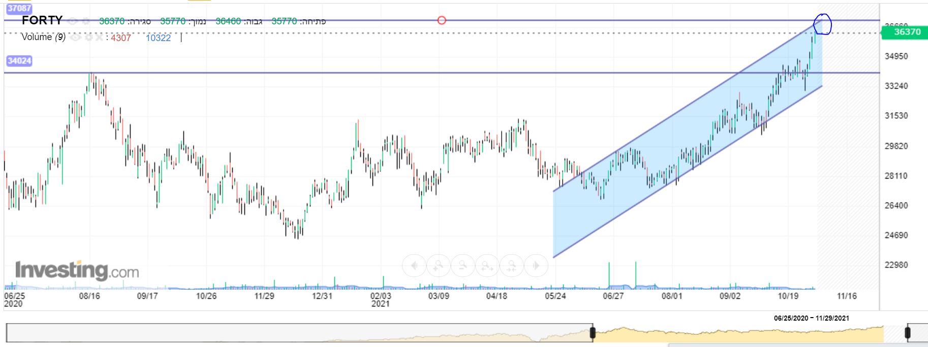 השלמה מאתמול... :-] כל הפרטים בגרף... אחרי השיא הקודם ב34000 לערך, קרובה לקצה תעלה. כמו דמרי גם כאן- לשקול מימוש חצי בשער 37000. זאת האסטרטגיה שלי בכל אופן. מחזיק ולא ממליץ.😛