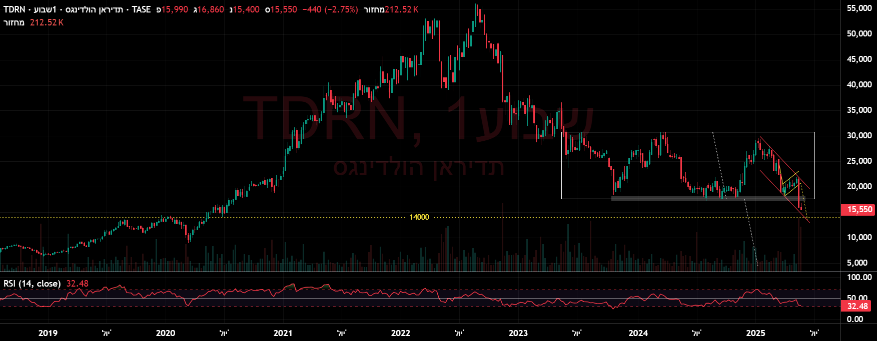 טכני, יש יעד דגל לאופקית (ותחתית תעלה) באזור 14000. אבל יש גם מלבן עם יעד מדומיין לכיוון 5000. גרף שבועי. לא בקי בפונד'. מה אומרים המנתחים🙇