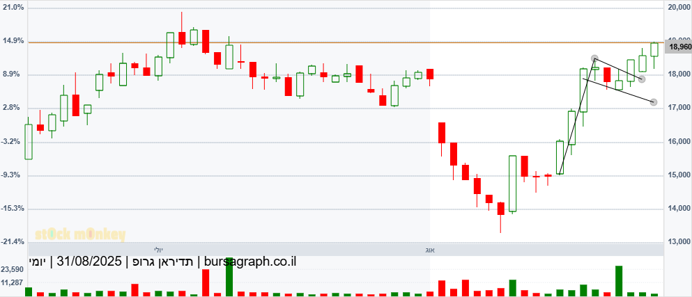 15 אחוז בשבועיים כמו הרבה מניות אחרות, מקווה שיש לזה רגליים לכיוון 21500 (20-25% נוספים)