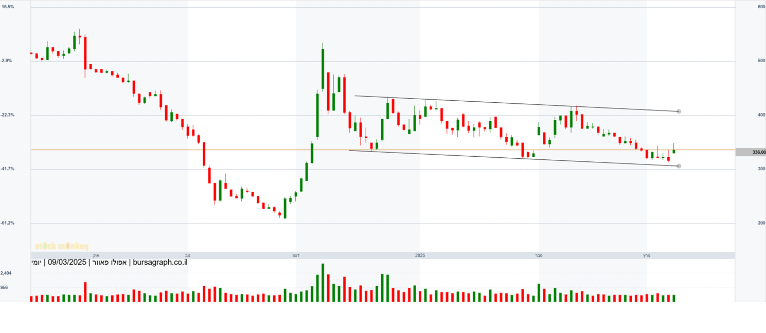 שקורצת לקונים באיזור 380(המניה לא שברה את השפל השנתי,למרות הדוח ועזיבת המנכ''ל). תרחיש אפשרי: רצועת מסחר שמתאימה לסוחרים לטווחים קצרים 380 ועד 530. נקודת האיזון 460. דעה ולא המלצה