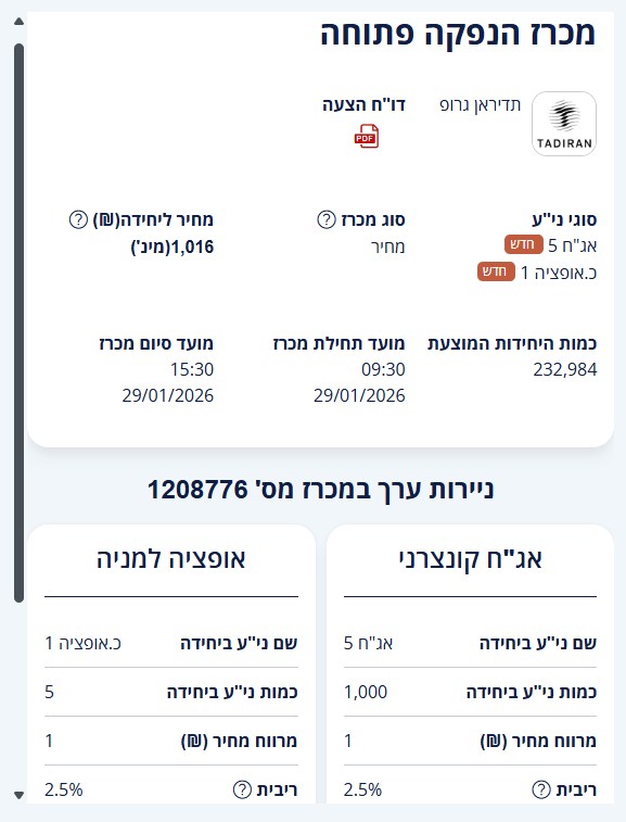 הודעה על עסקה שהייתה כבר ב 25 אם צפי