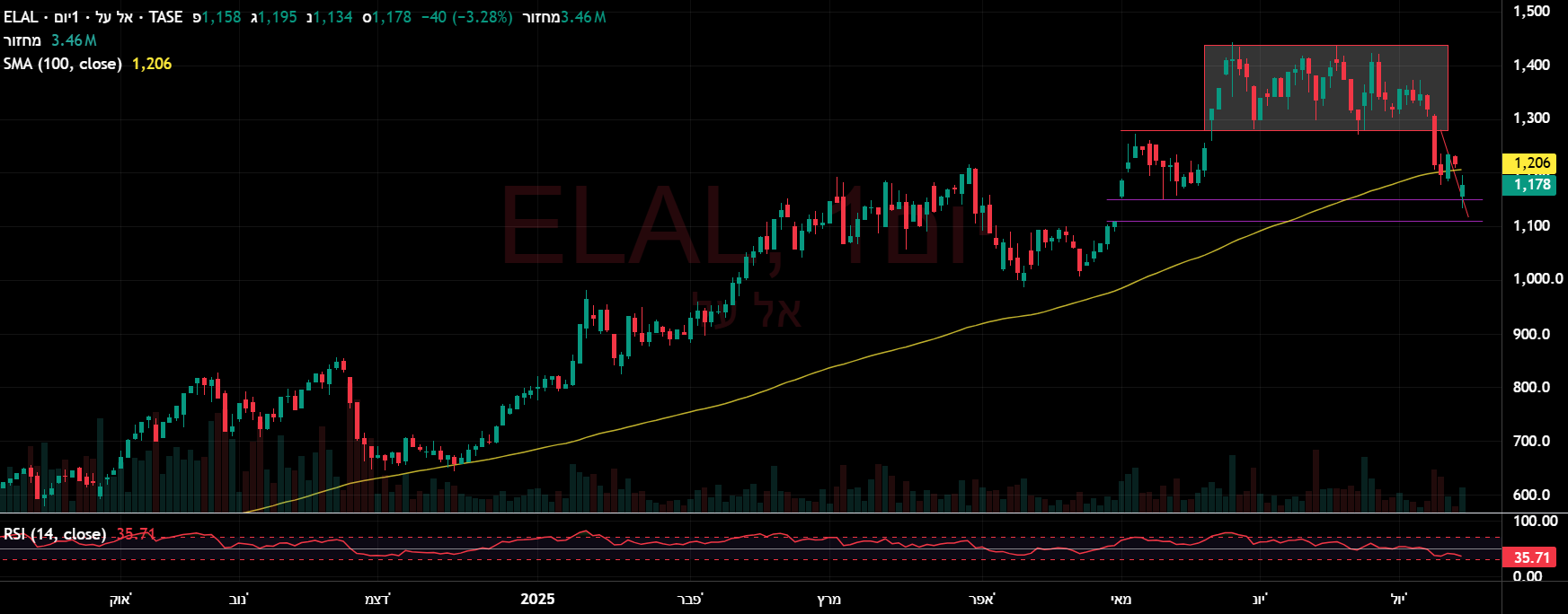 שעבר בטריילינג סטופ (רווח כ-25 אחוז) נראה שנתמכת על האופקית + מתנד במכירת יתר. גרזנו אותה חזק בזמן קצר והסכנה לא חלפה, אבל אני נכנס ויוצא ממנה פה ושם, ומבחינתי זו נקודה טובה.