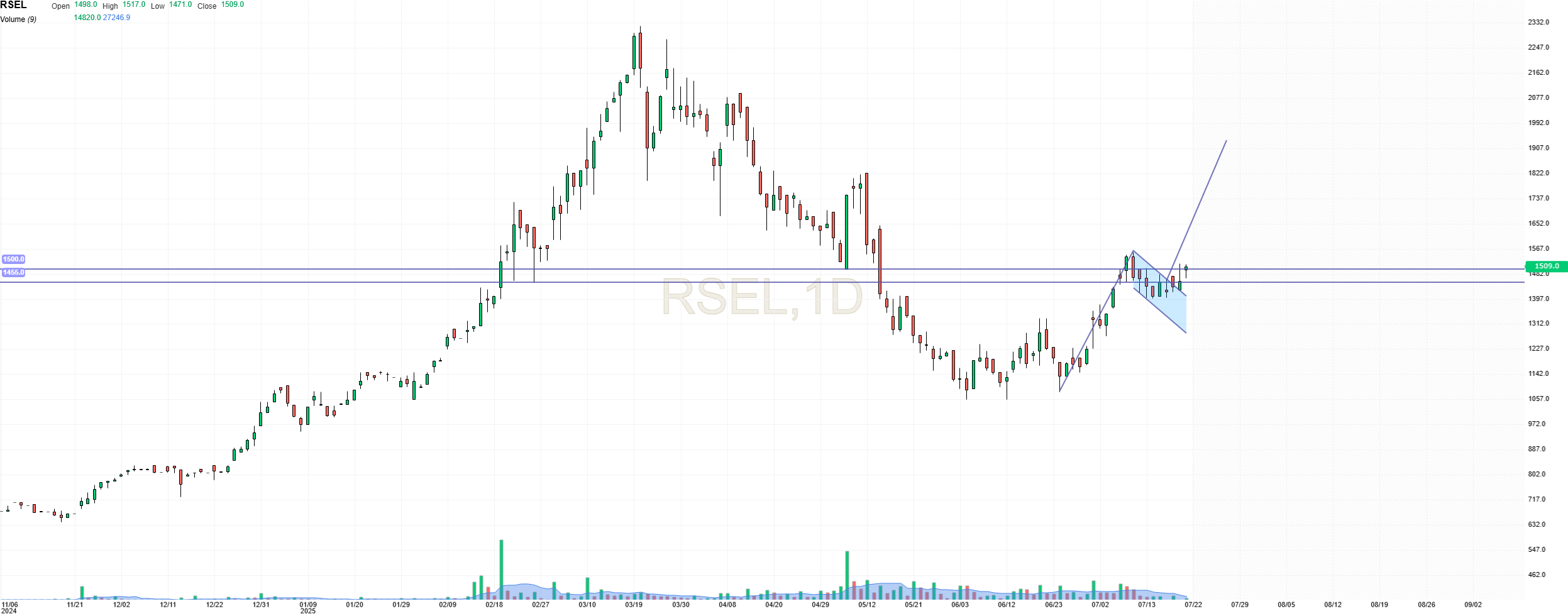 סגרה את הגאפ של הדוח ונתקלה בקצה תעלה. פה בעיה. אולי ירידה לבניית שפל עולה, תיתן כח לפריצה. בפריצה הכיוון אמור להיות 600.