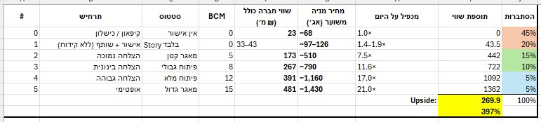 אין כסף לכן זו תהיה השקעה מאוד ממונפת מבחינתה. אם זו לא הייתה מודיעין אחלה הזדמנות. אבל במודיעין יש שאלות וחובת ההוכחה עליה.