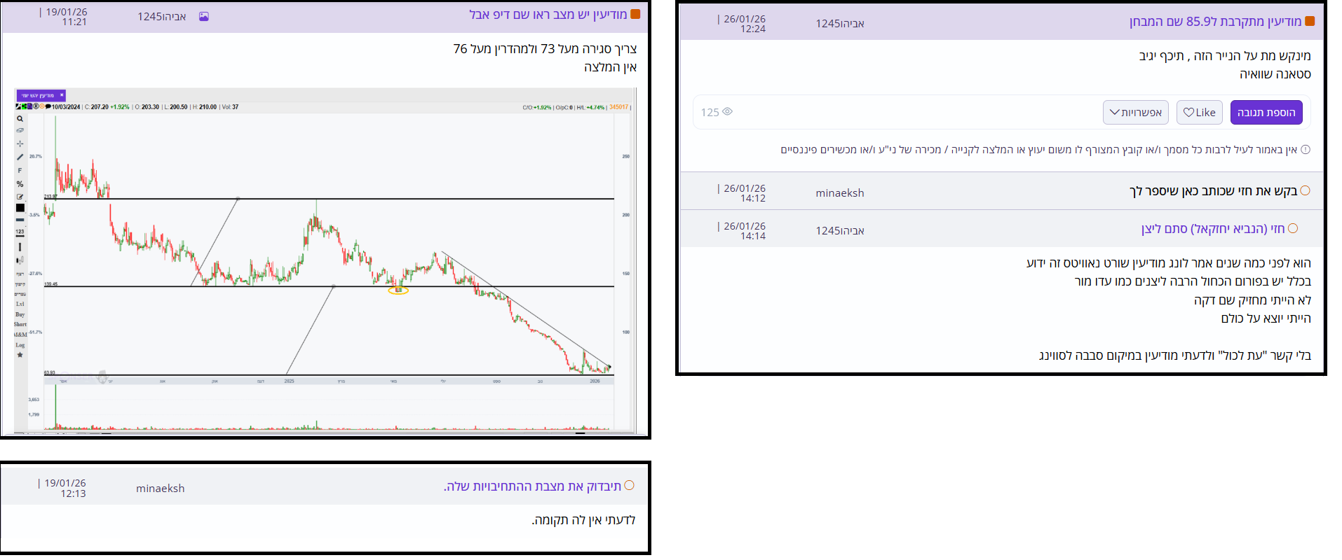 הדבר היחיד ש"דופק" את המניה הוא שכשאומרים מודיעין אנרגיה, חושבים צחי סולטן.אם זה היה תדמור או תשובה,היינו במקום לגמרי אחר. אם זה בצדק או לא,ימים לא רבים יגידו.