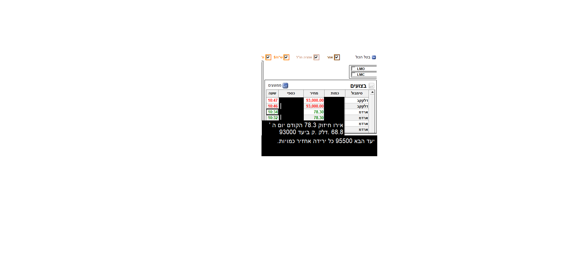 מקווה שגם אירודרום ינעל שוב היום. שלחתי על 75 נעילה דלק.ק שולח לנעילה 96000 חלקית (חלפה על יעד 95500 כבר 95700 עין 3 תישלח על 900